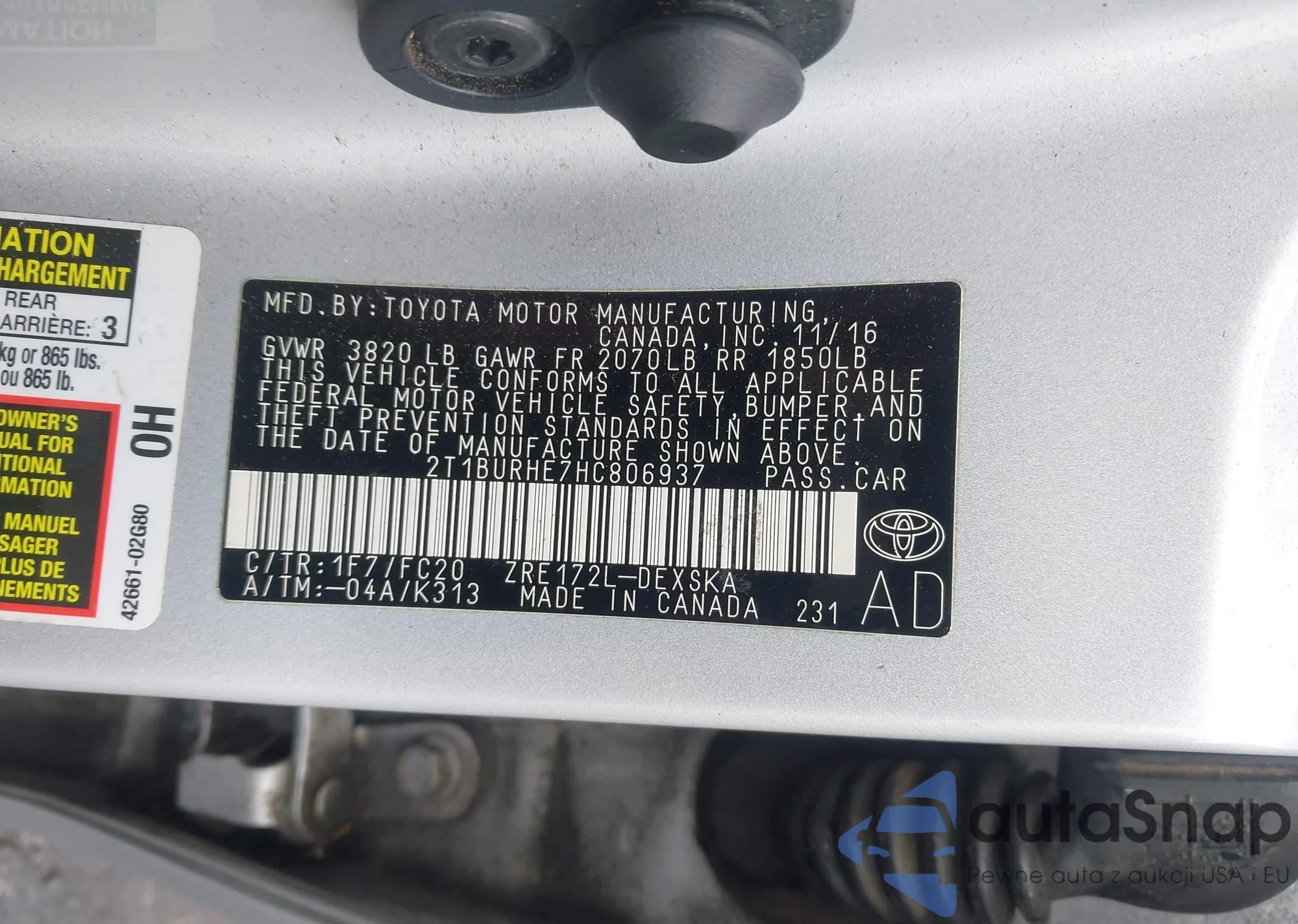 VIN: 2T1BURHE7HC806937