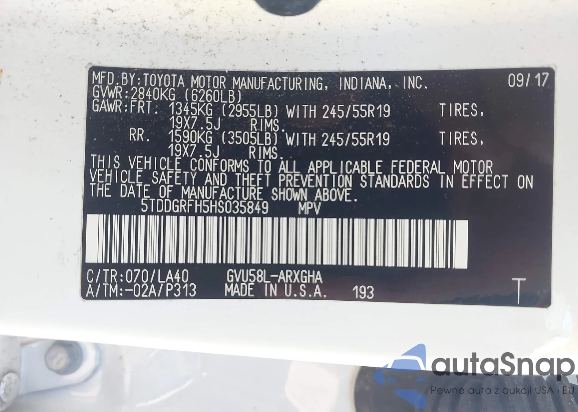VIN: 5TDDGRFH5HS035849