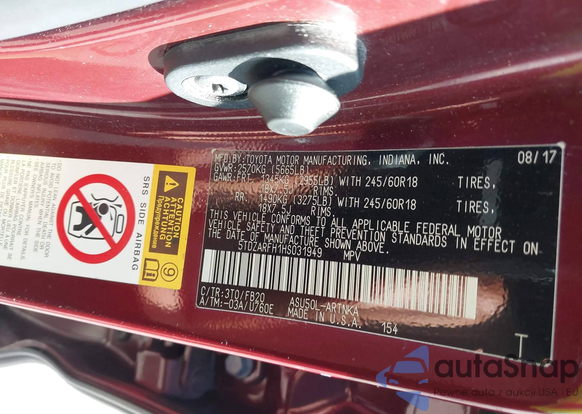 VIN: 5TDZARFH1HS031949