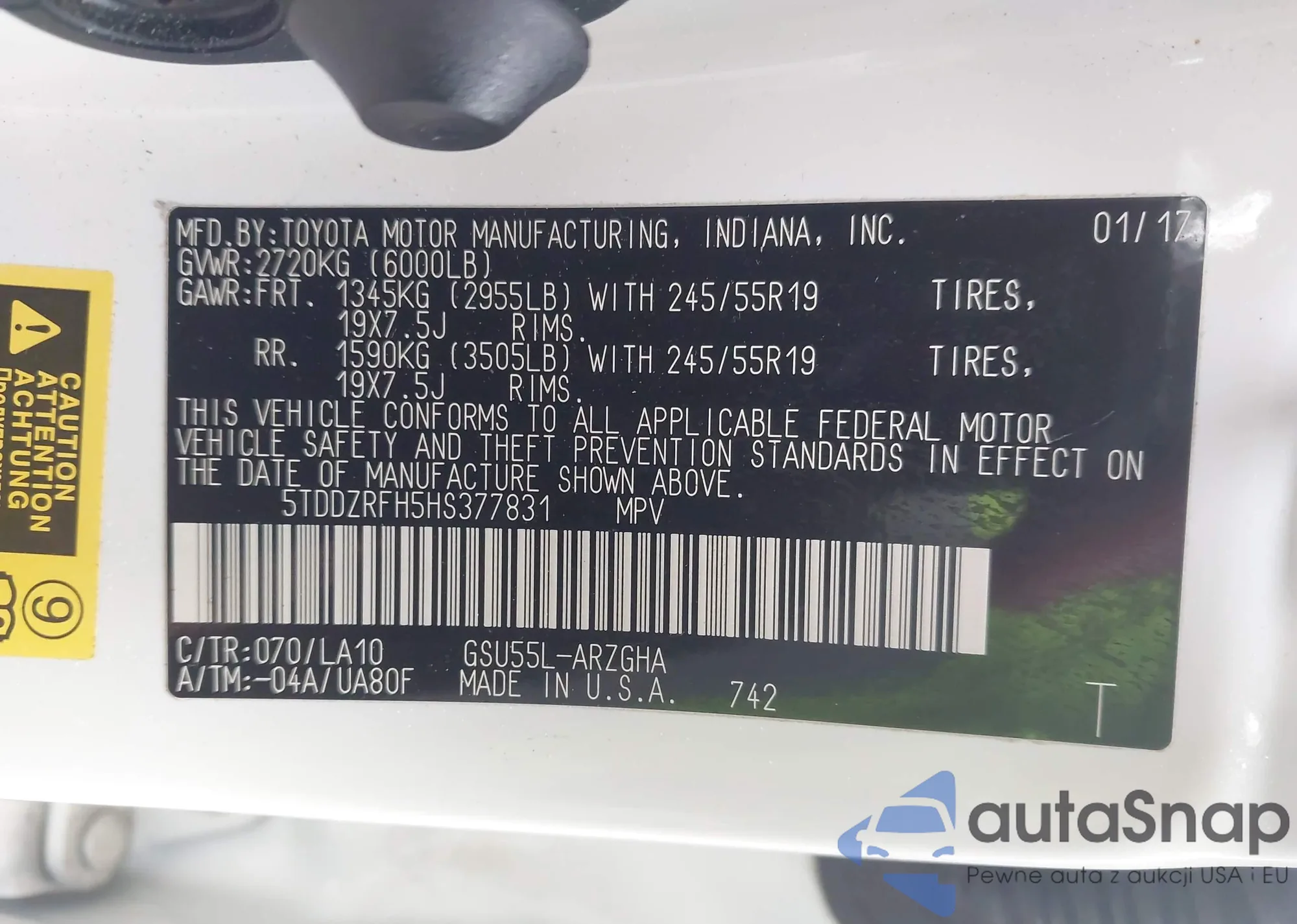 The car Toyota Highlander 2017 (VIN 5TDDZRFH5HS377831) has not been auctioned before. The documents are clean, and the mileage matches or is below the market average. Sold by an insurance company – we recommend purchase. Delivery to the port will take approx. 6–8 weeks.