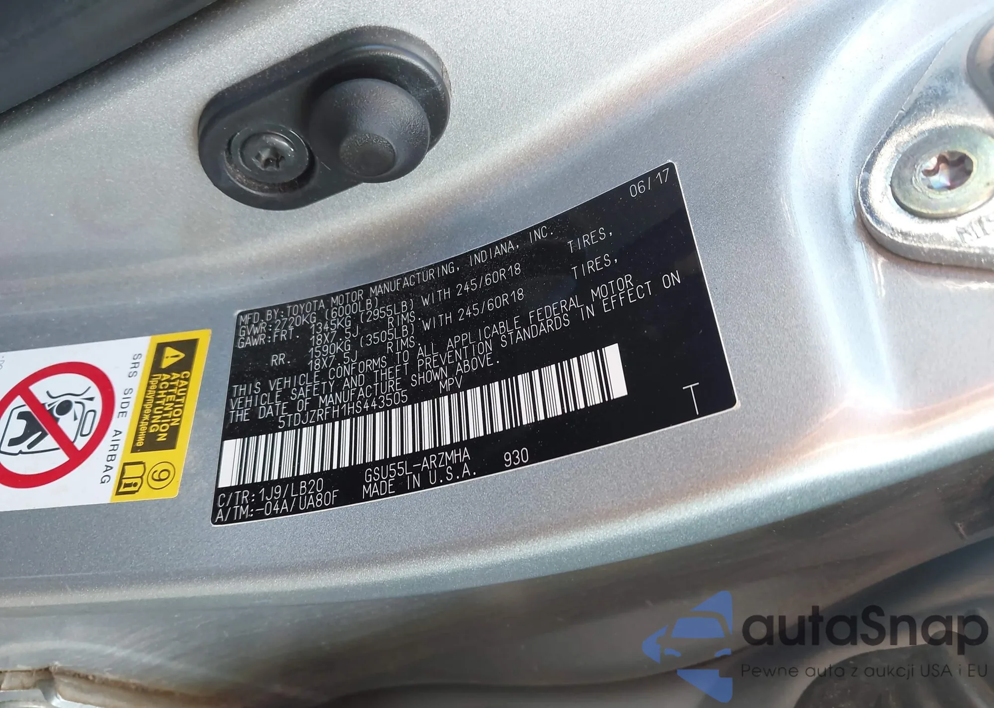The car Toyota Highlander 2017 (VIN 5TDJZRFH1HS443505) has not been auctioned before. The documents are clean, and the mileage matches or is below the market average. Sold by an insurance company – we recommend purchase. Delivery to the port will take approx. 6–8 weeks.