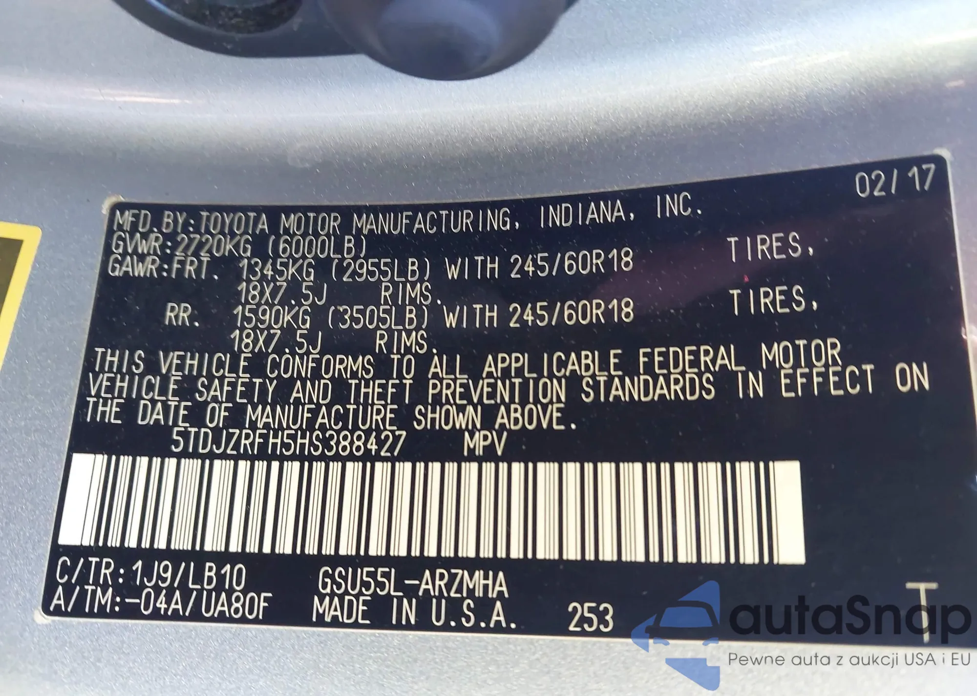VIN: 5TDJZRFH5HS388427