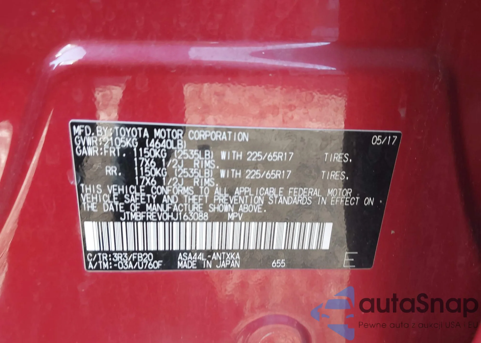 VIN: JTMBFREV0HJ163088