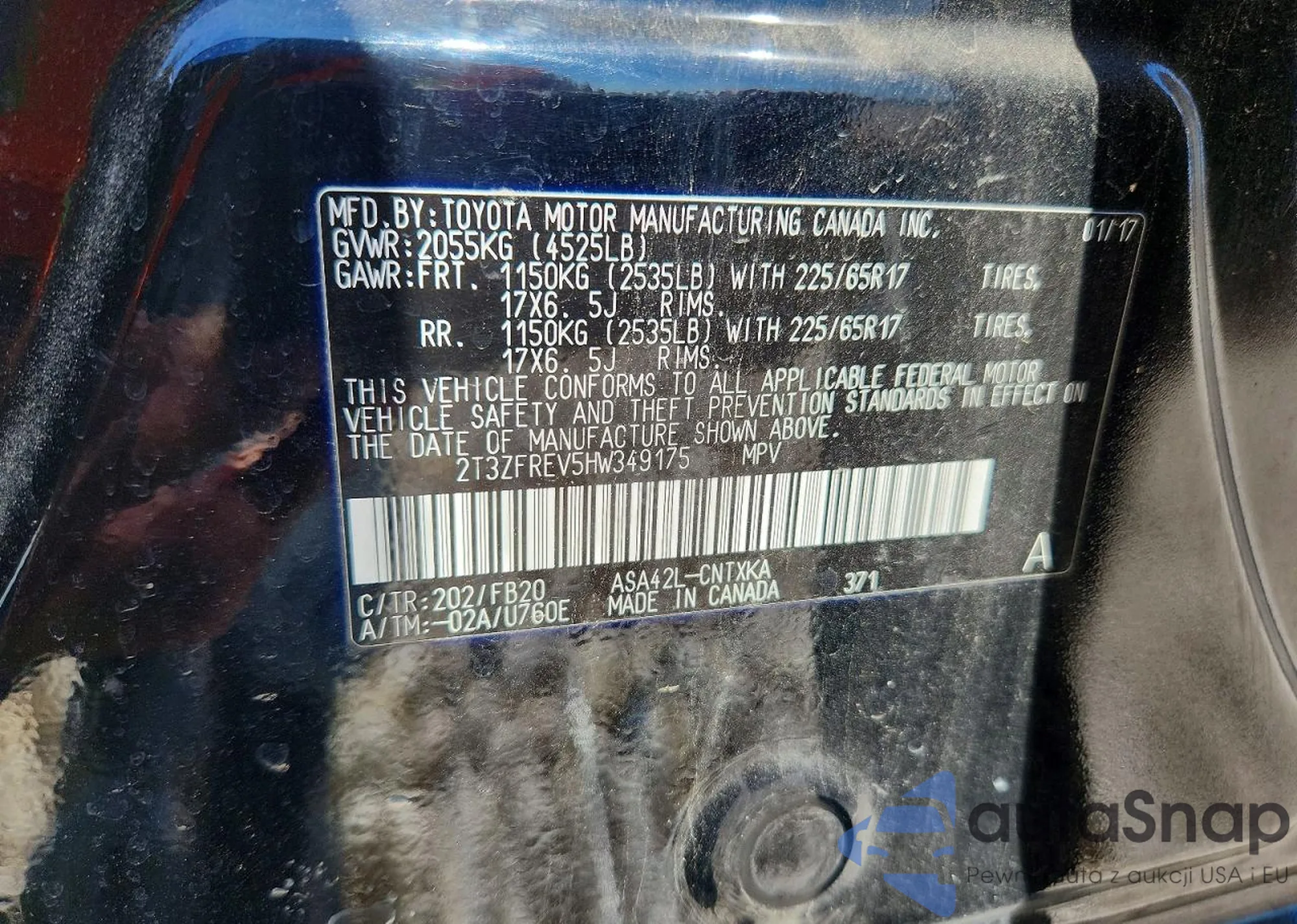The car Toyota RAV 4 2017 (VIN 2T3ZFREV5HW349175) is sold by an unverified seller. We recommend checking the Carfax report and confirming registration possibilities before purchase.
