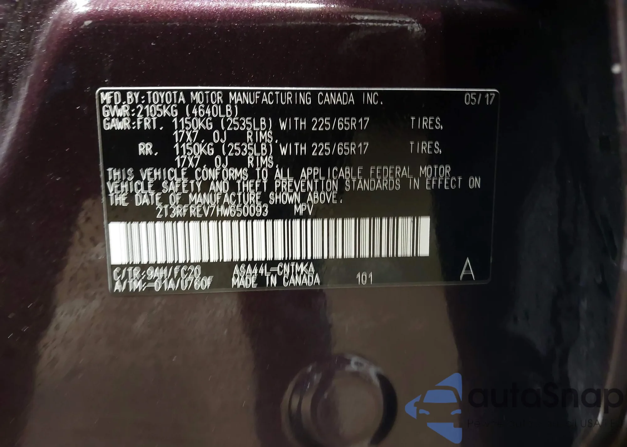 VIN: 2T3RFREV7HW650093