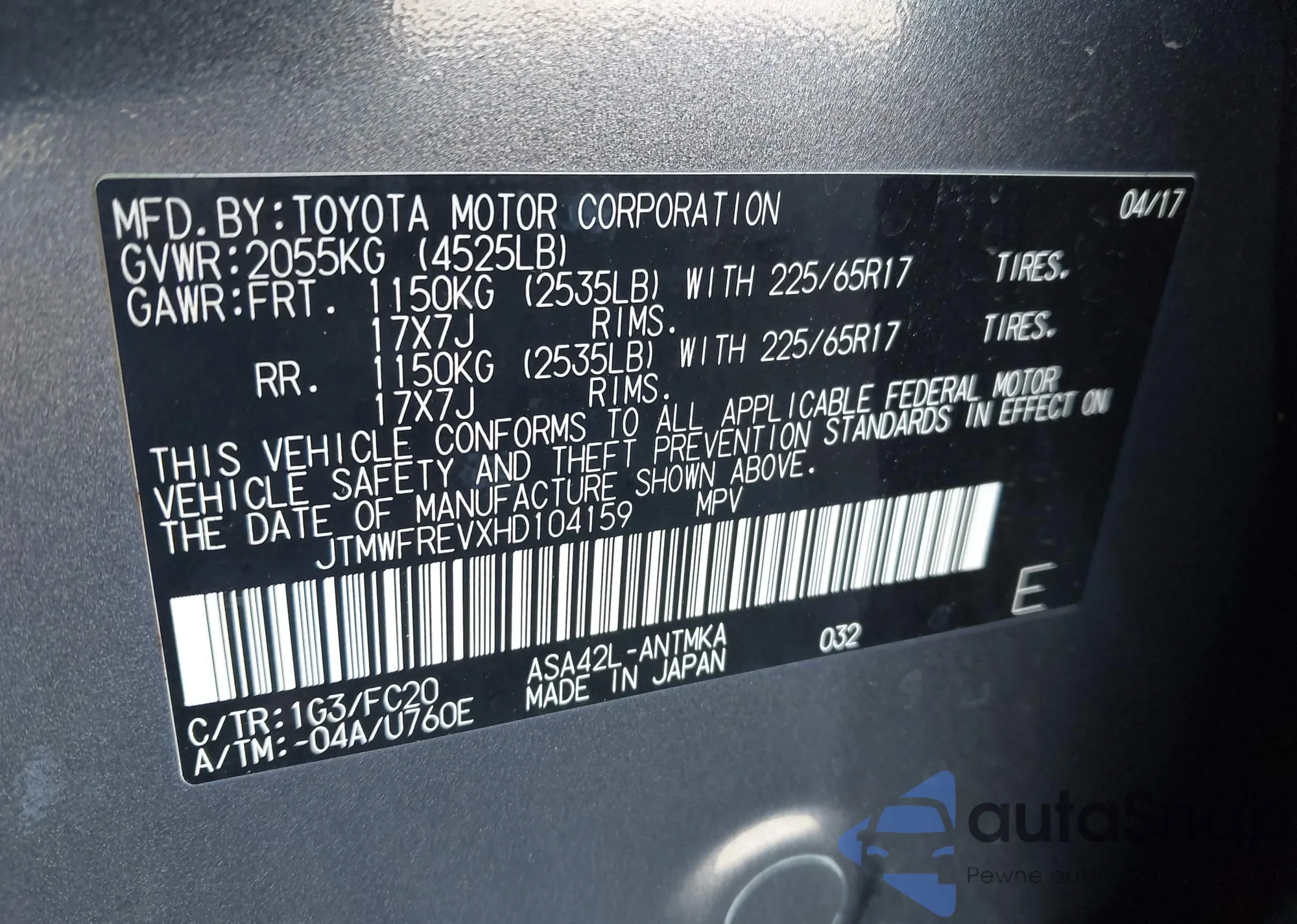 VIN: JTMWFREVXHD104159