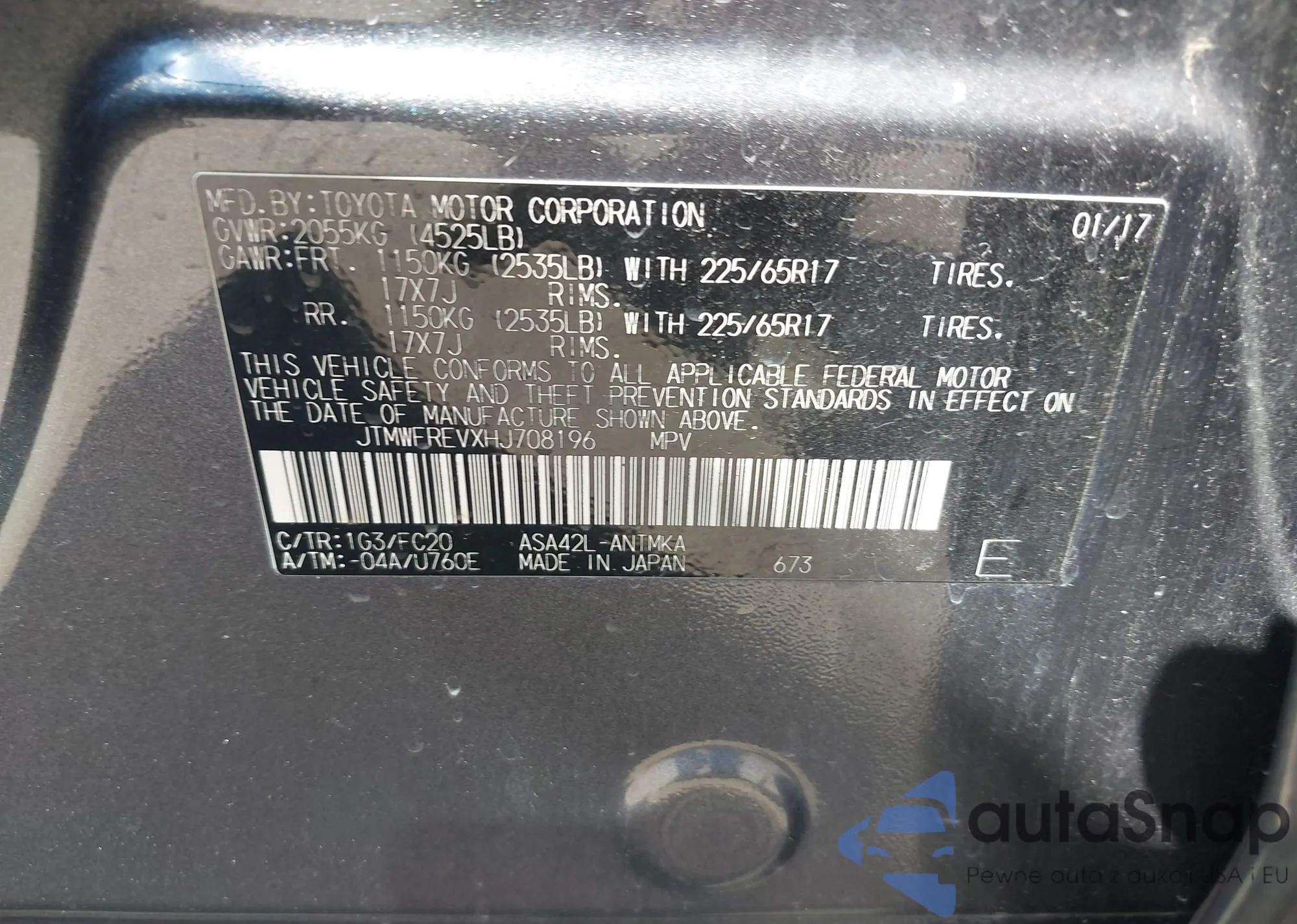VIN: JTMWFREVXHJ708196
