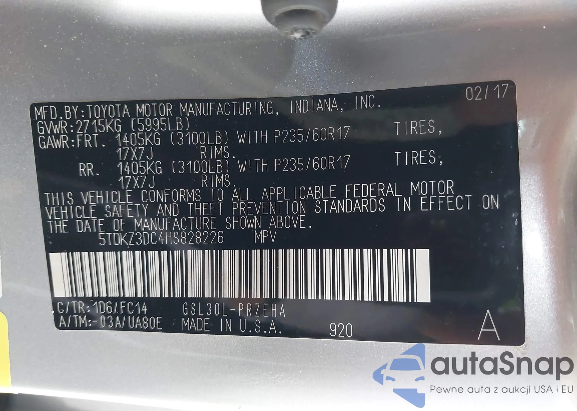 Toyota Sienna 2017 – Vehicle History (Sold at IAAI)