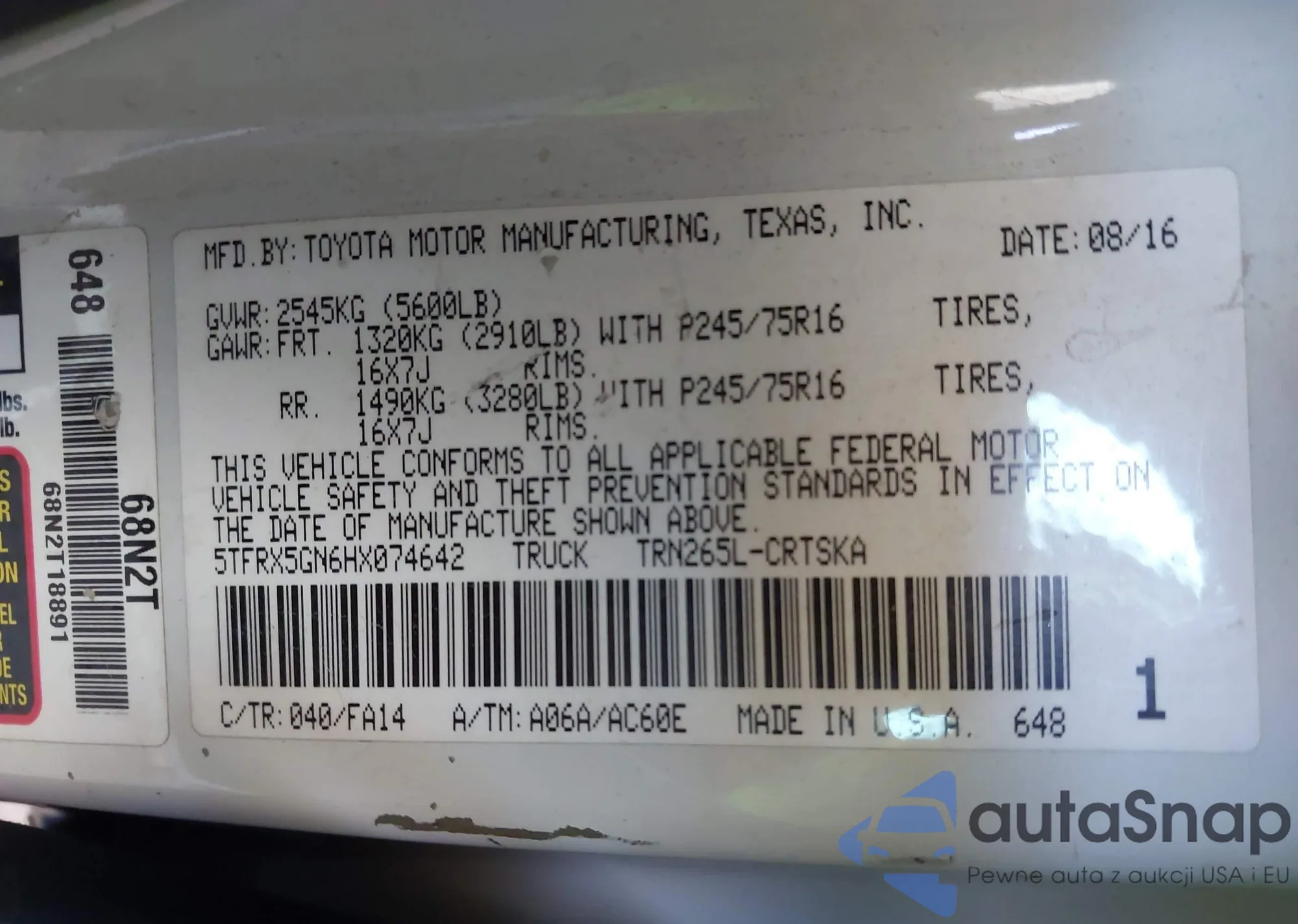 VIN: 5TFRX5GN6HX074642