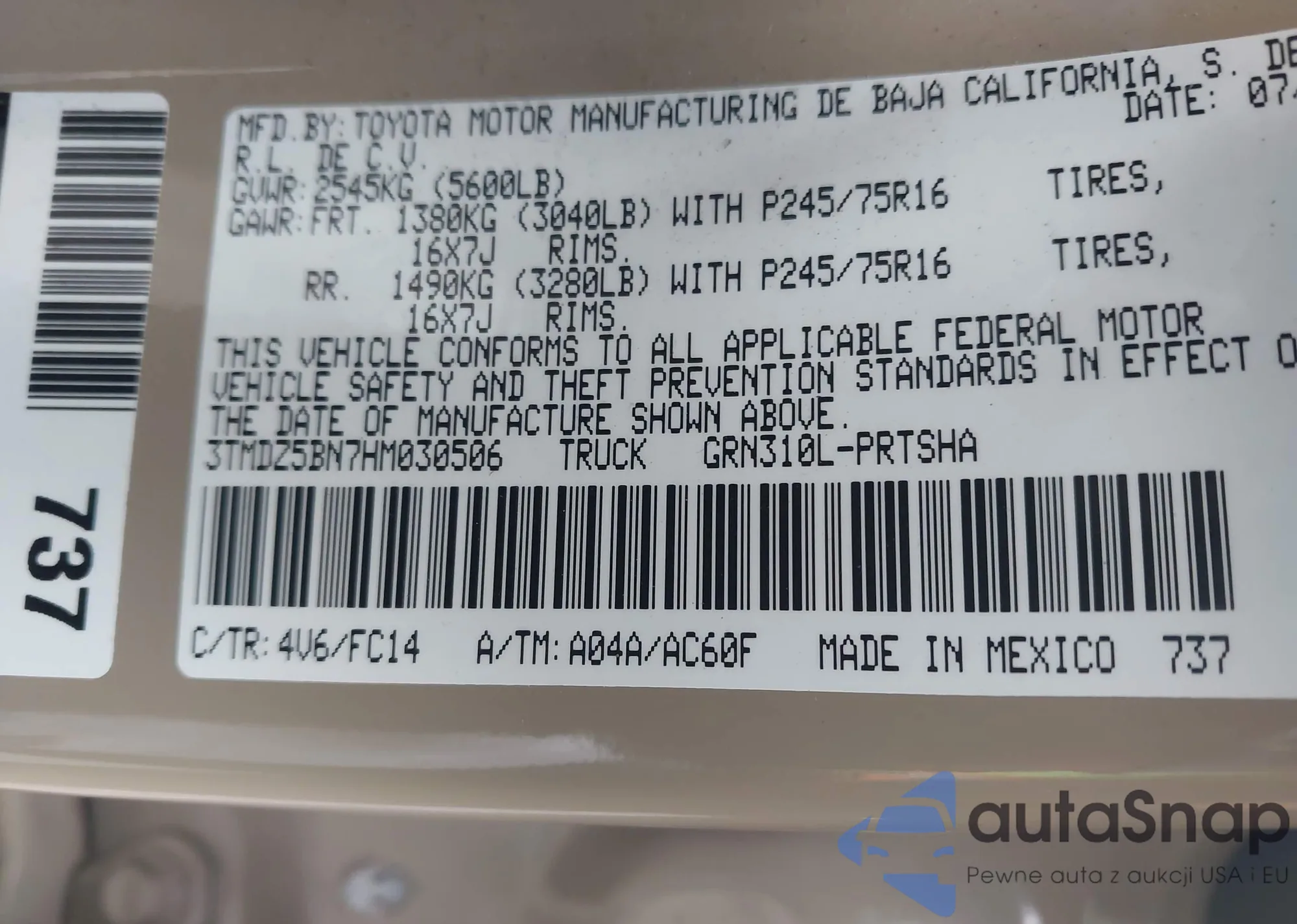 VIN: 3TMDZ5BN7HM030506