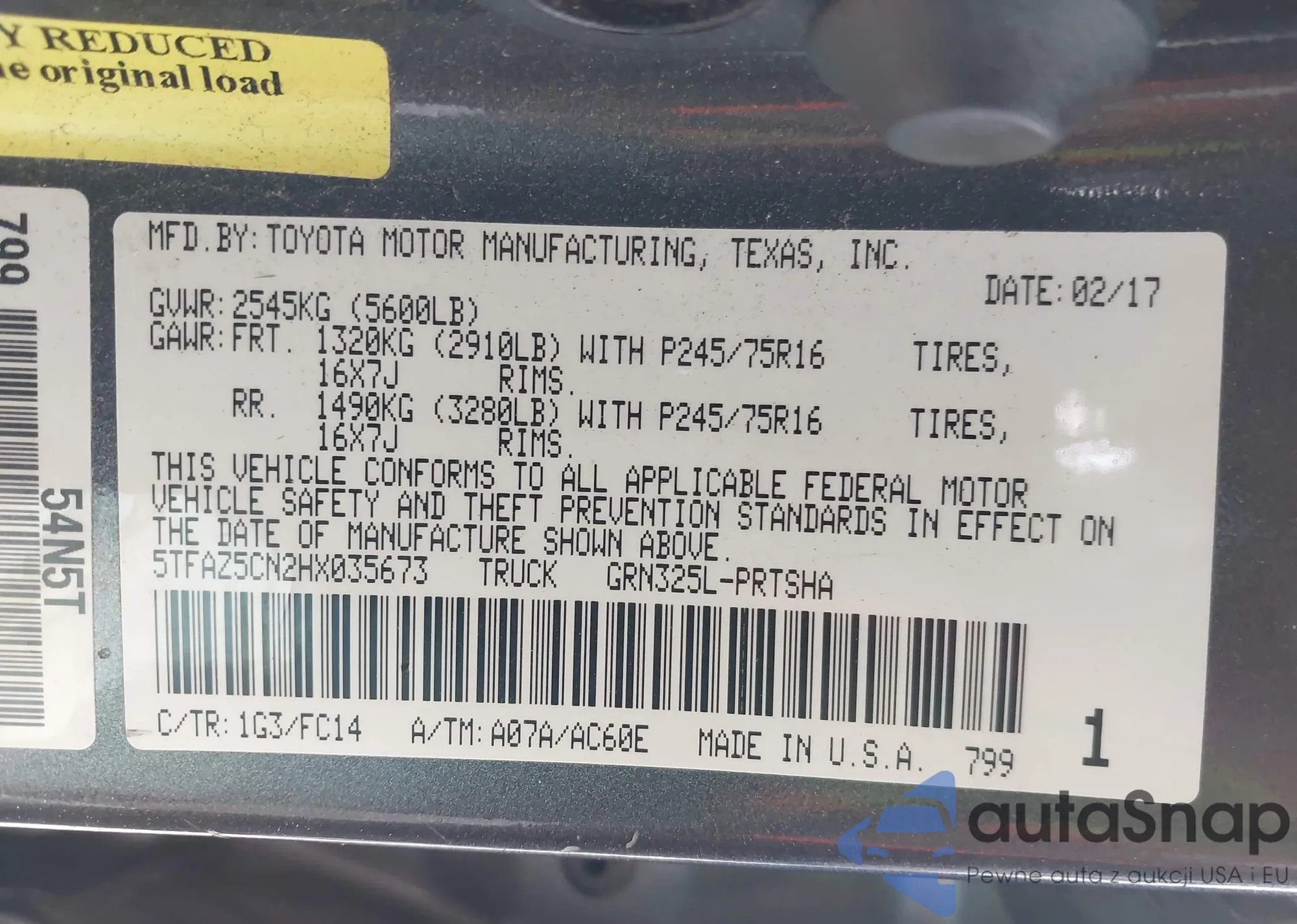 The car Toyota Tacoma 2017 (VIN 5TFAZ5CN2HX035673) has not been auctioned before. The documents are clean, and the mileage matches or is below the market average. Sold by an insurance company – we recommend purchase. Delivery to the port will take approx. 6–8 weeks.
