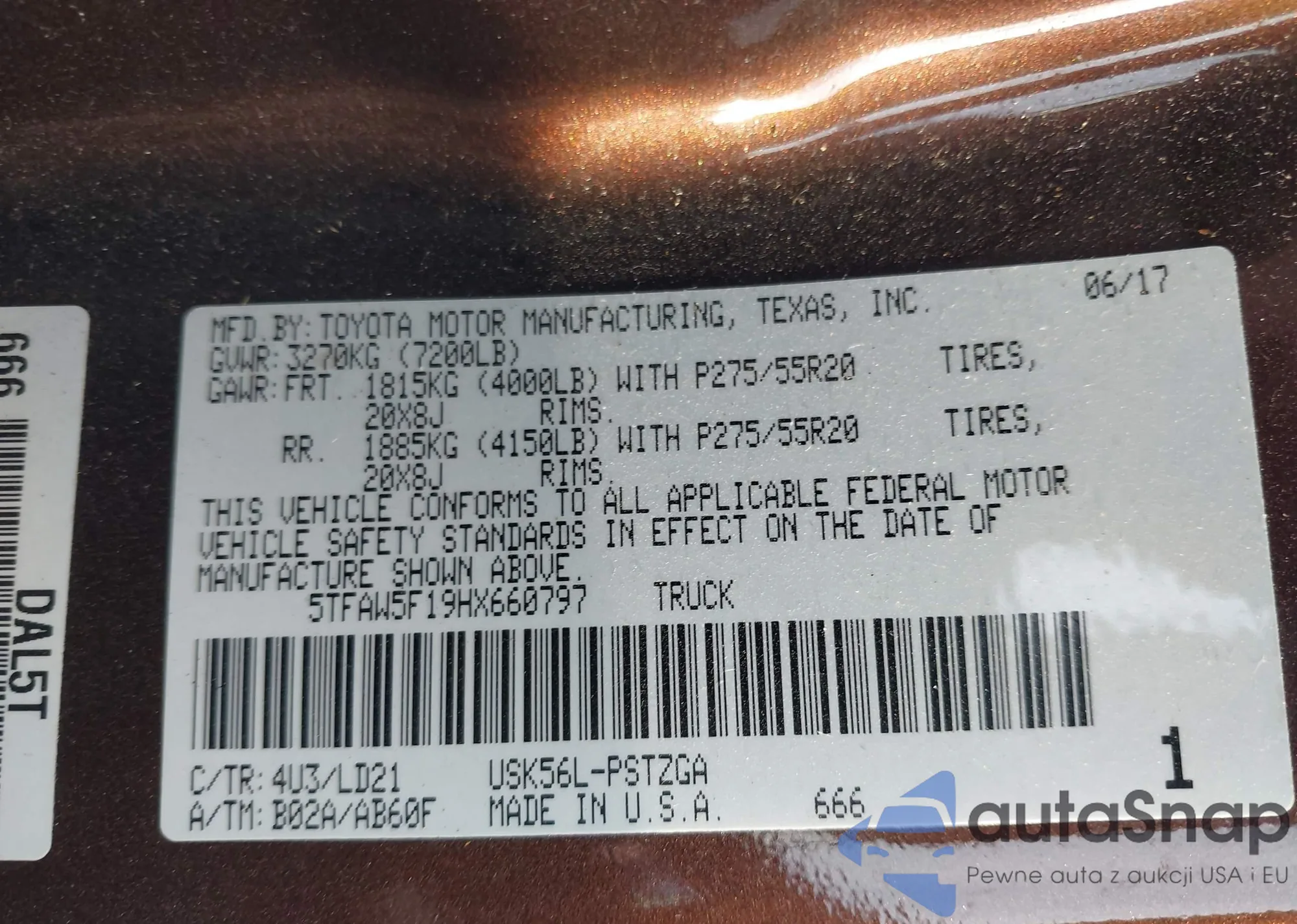 VIN: 5TFAW5F19HX660797