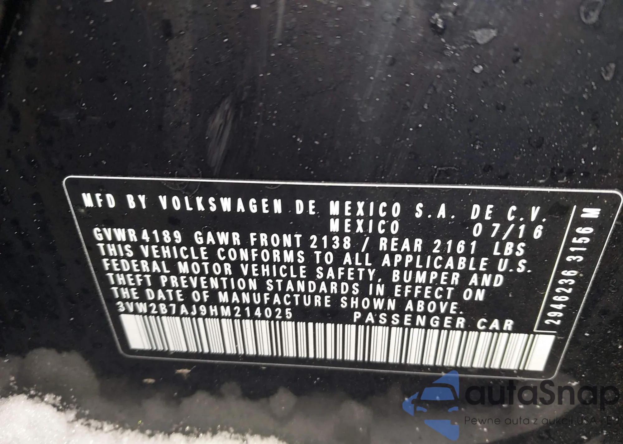 • VIN: 3VW2B7AJ9HM214025