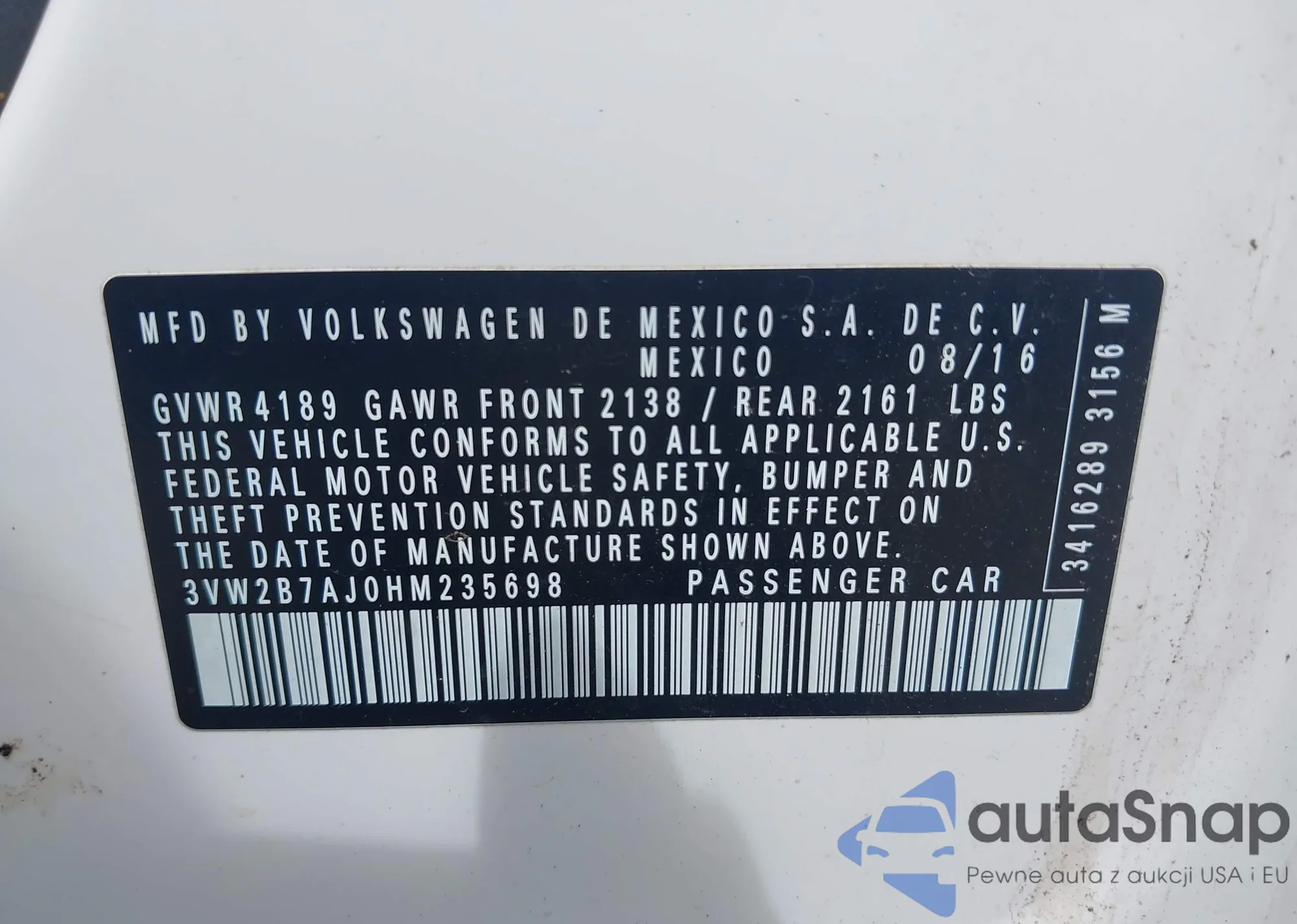 VIN: 3VW2B7AJ0HM235698