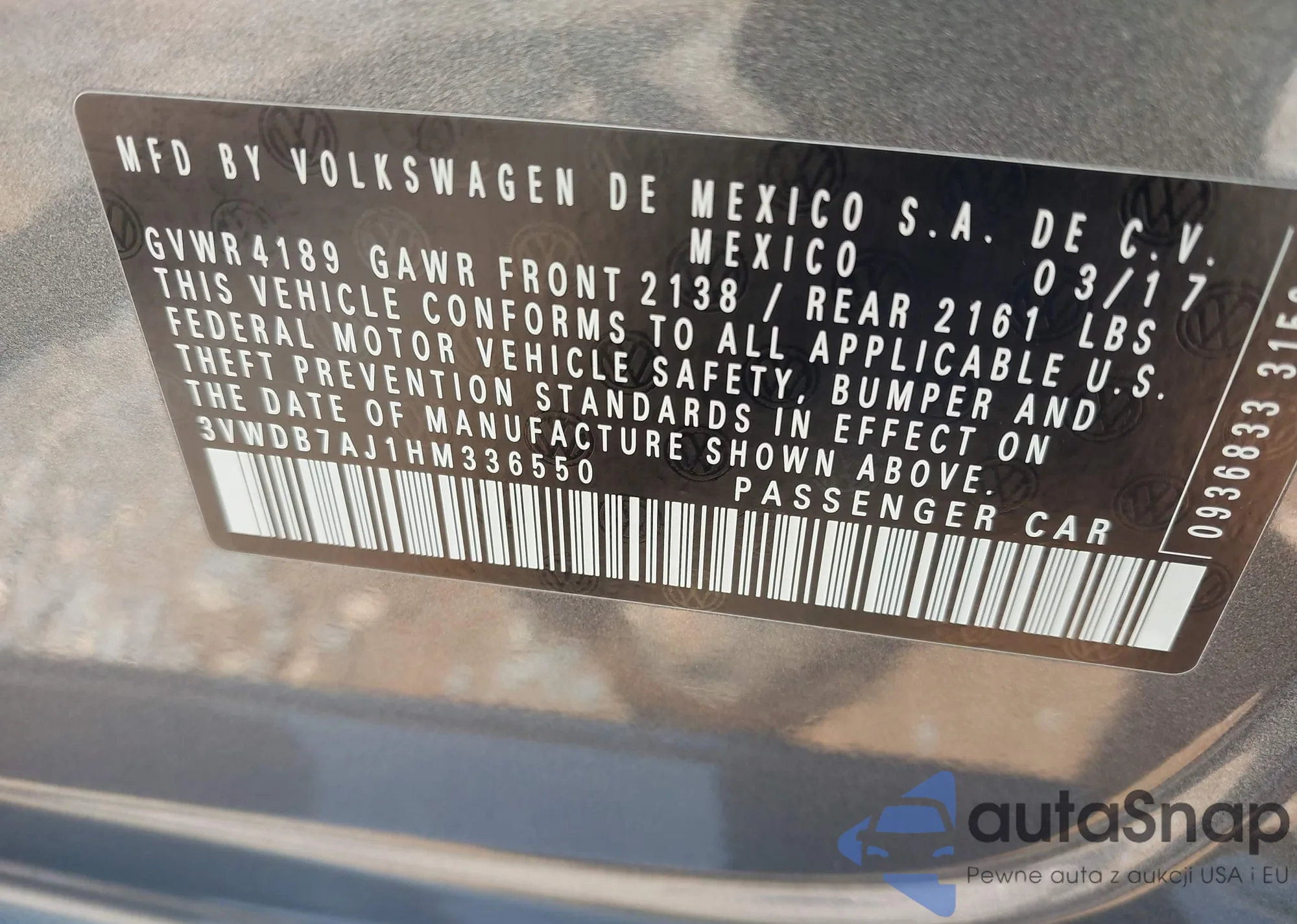 VIN: 3VWDB7AJ1HM336550