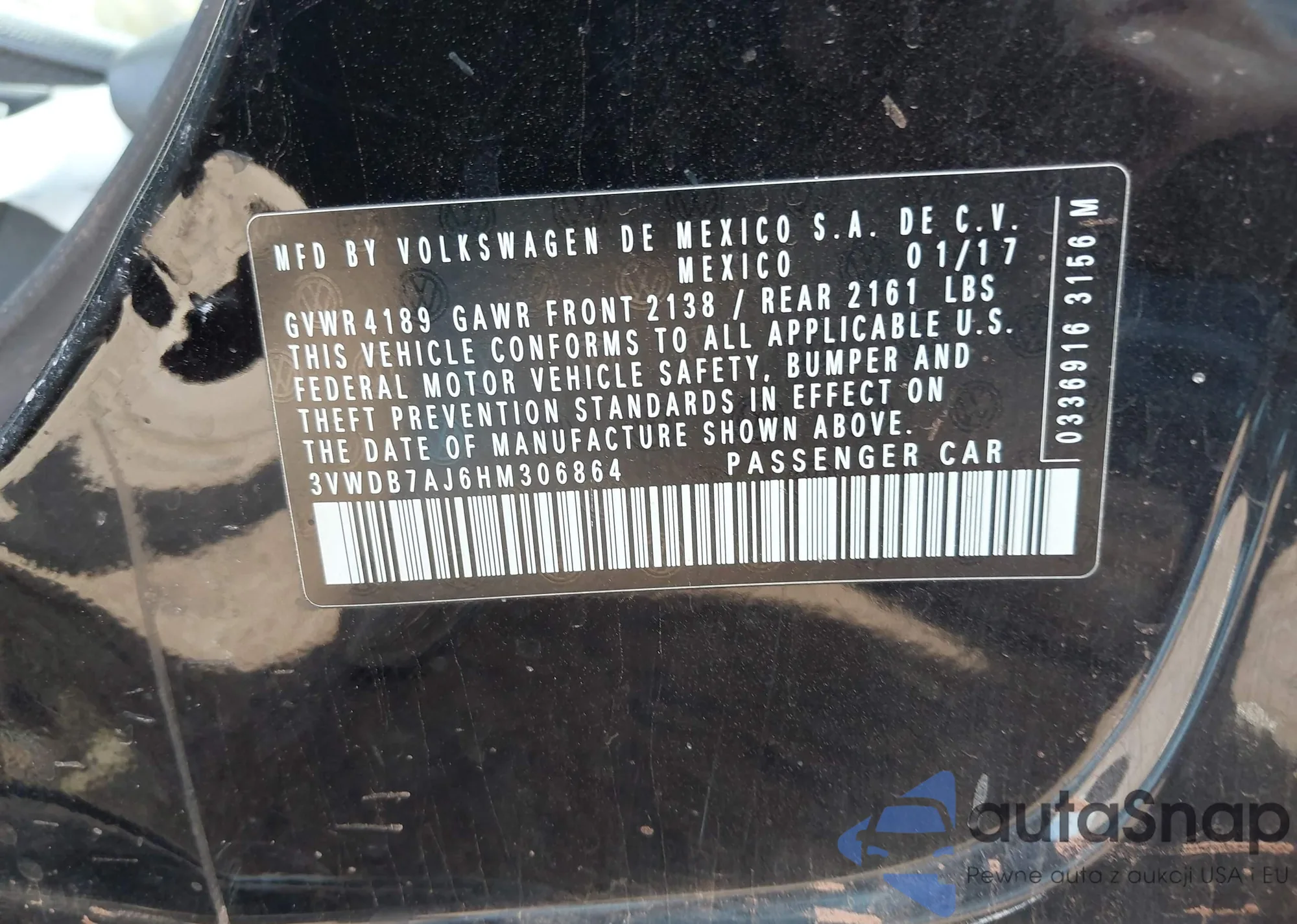 • VIN: 3VWDB7AJ6HM306864