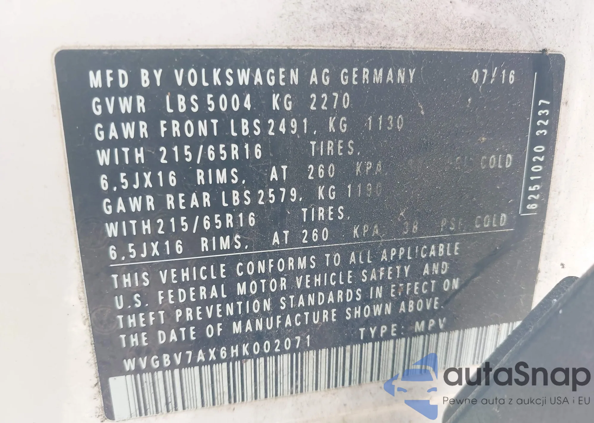 VIN: WVGBV7AX6HK002071