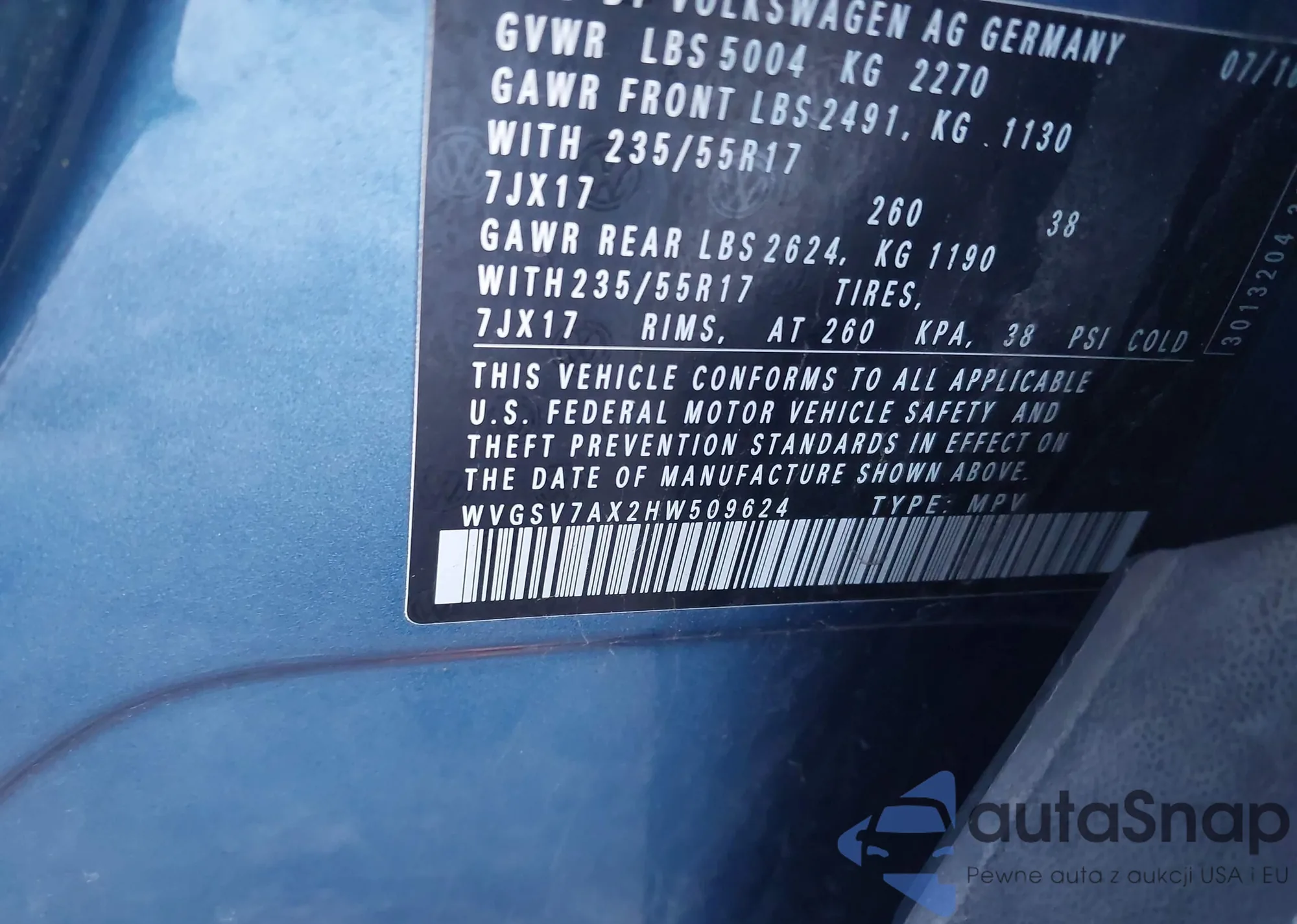 • VIN: WVGSV7AX2HW509624