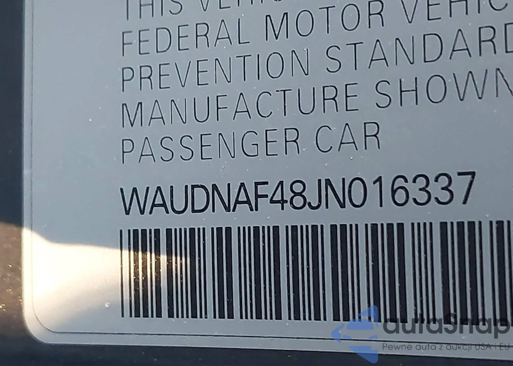 The car Audi A4 2018 (VIN WAUDNAF48JN016337) has not been auctioned before. The documents are clean, and the mileage matches or is below the market average. Sold by an insurance company – we recommend purchase. Delivery to the port will take approx. 6–8 weeks.