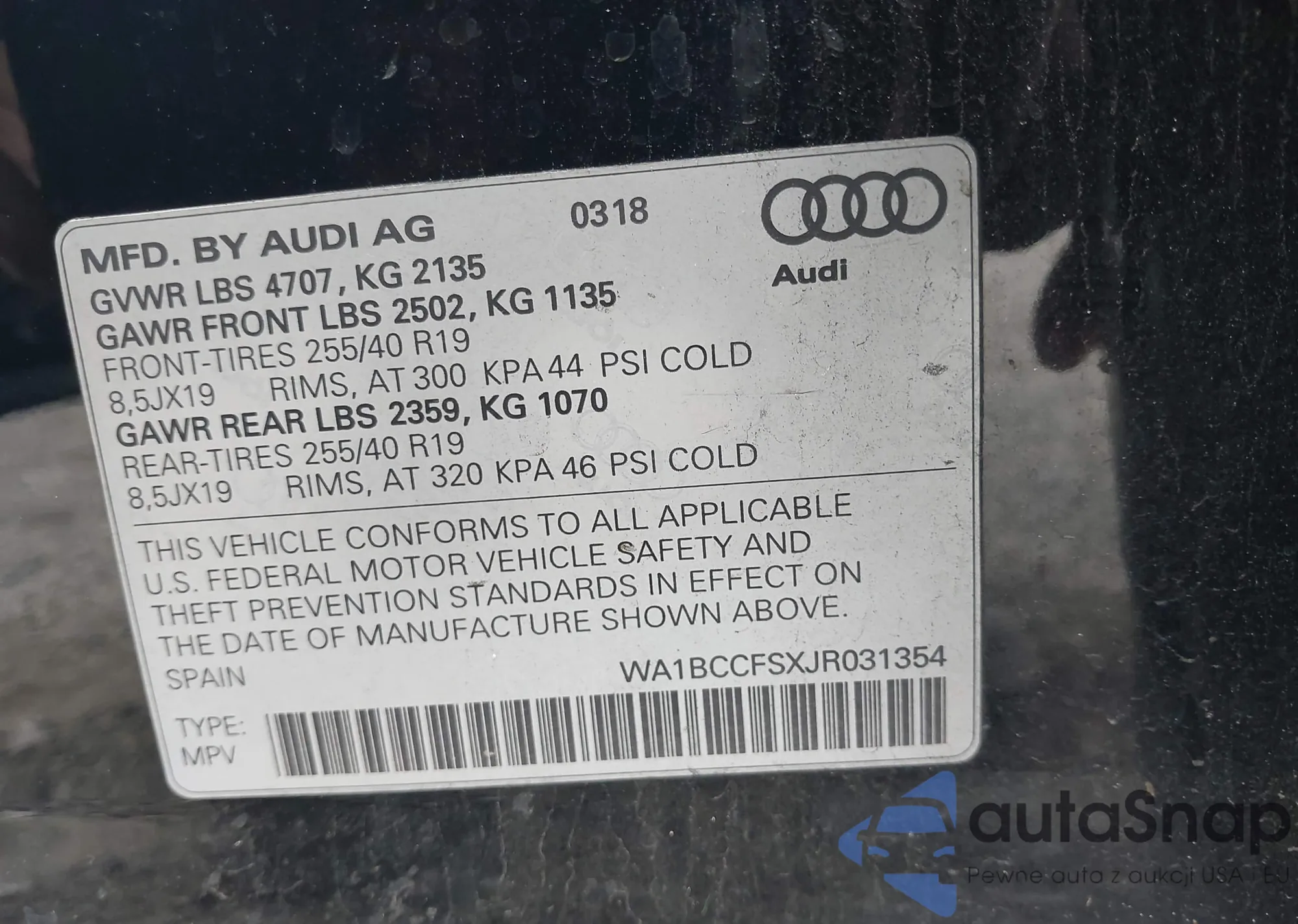 VIN: WA1BCCFSXJR031354