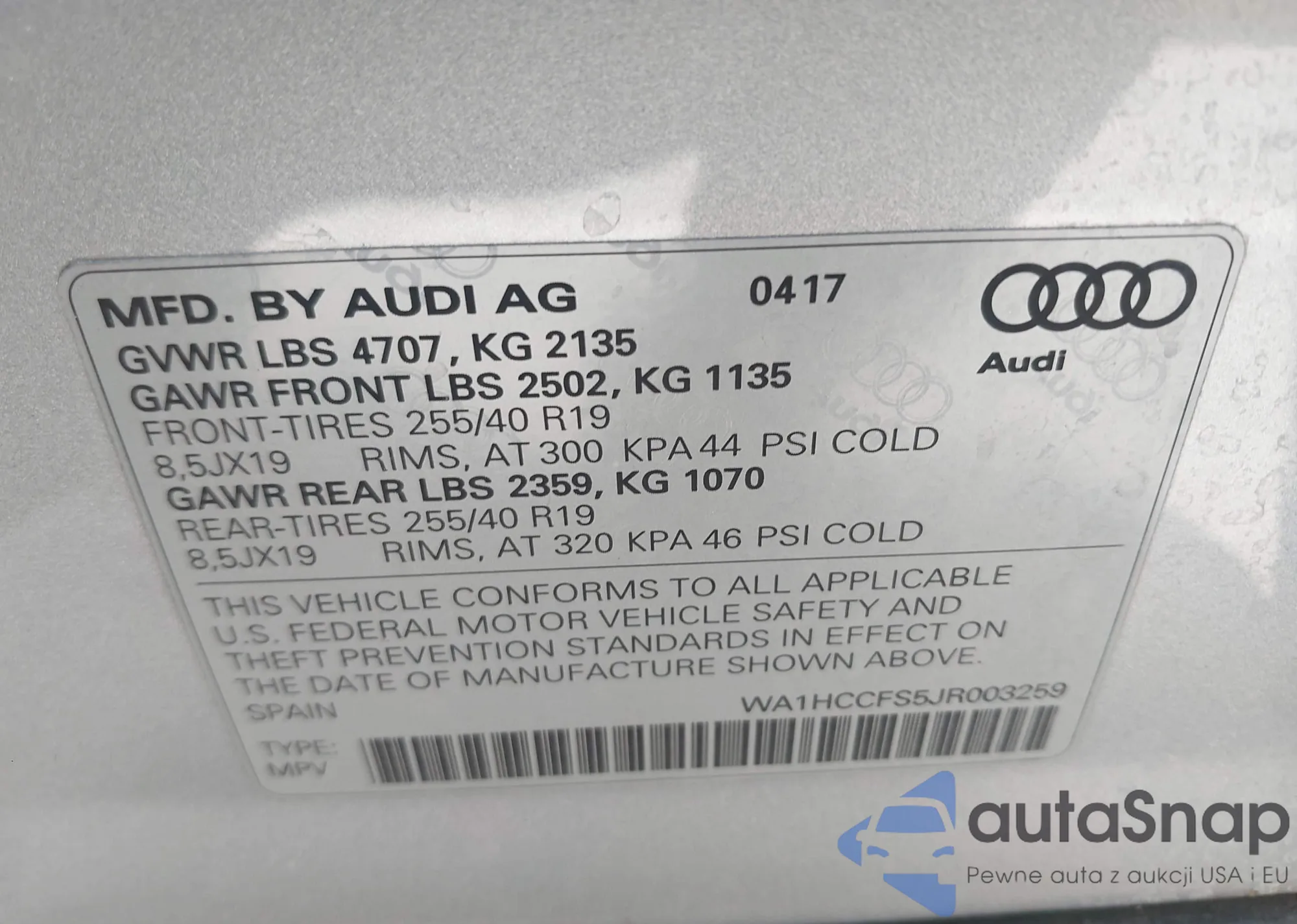 VIN: WA1HCCFS5JR003259