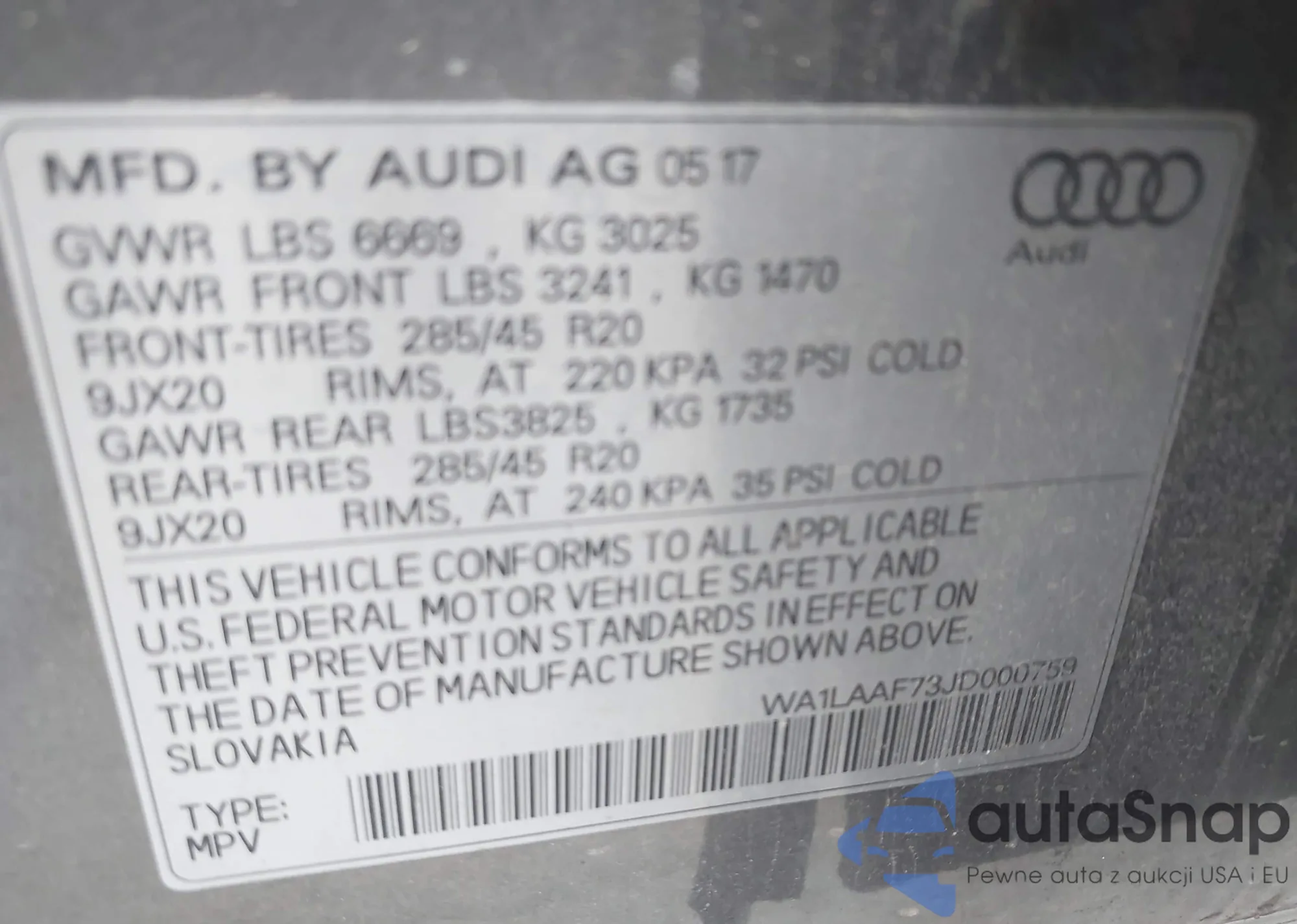 • VIN: WA1LAAF73JD000759