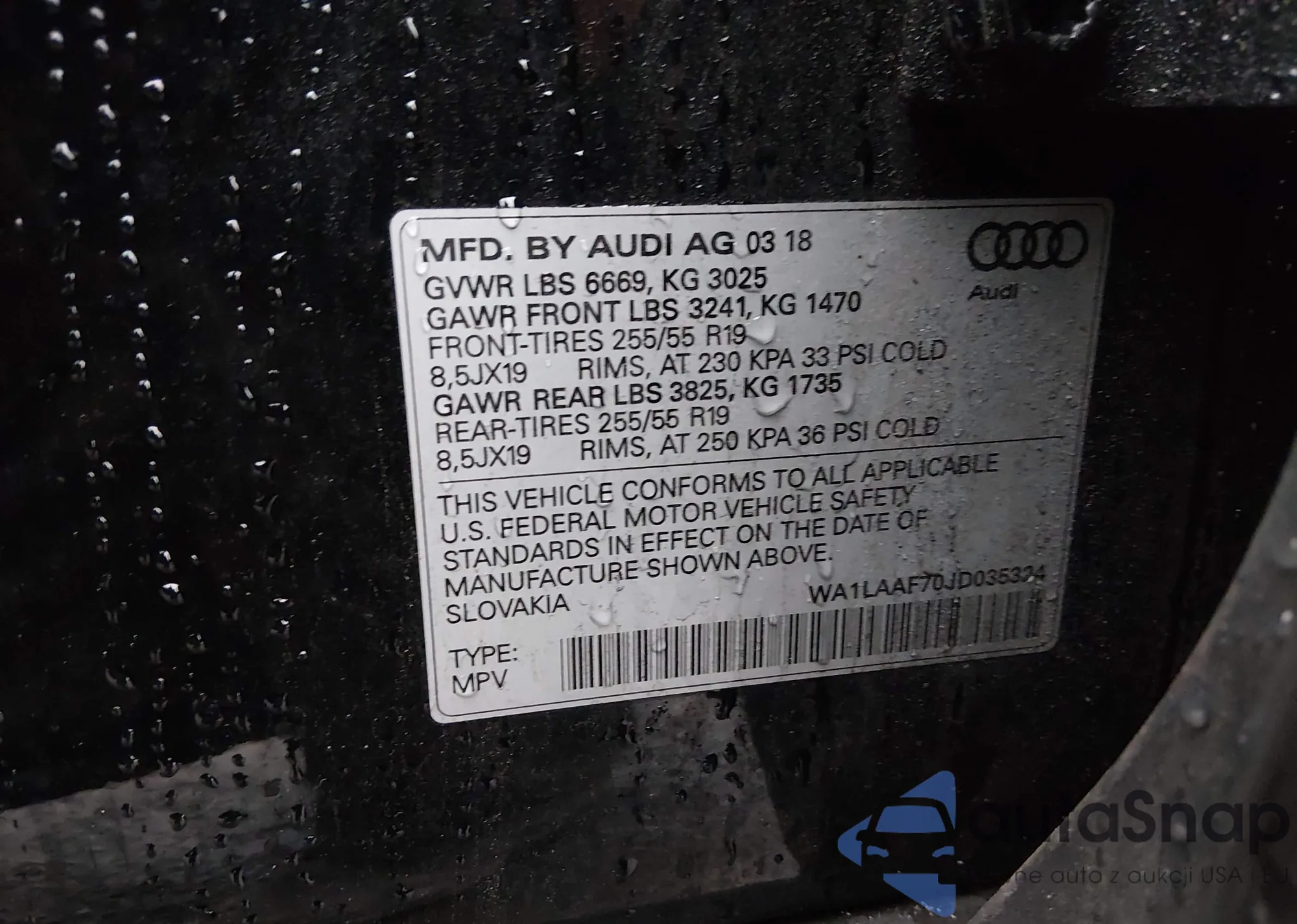 The car Audi Q7 2018 (VIN WA1LAAF70JD035324) has not been auctioned before. The documents are clean, and the mileage matches or is below the market average. Sold by an insurance company – we recommend purchase. Delivery to the port will take approx. 6–8 weeks.