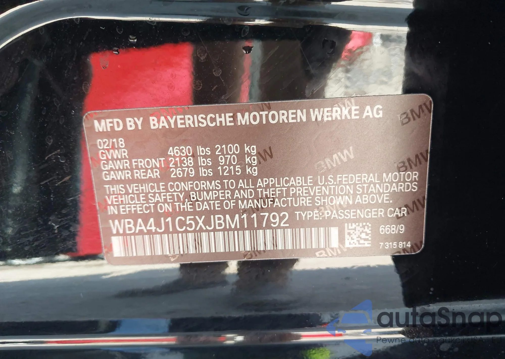 VIN: WBA4J1C5XJBM11792