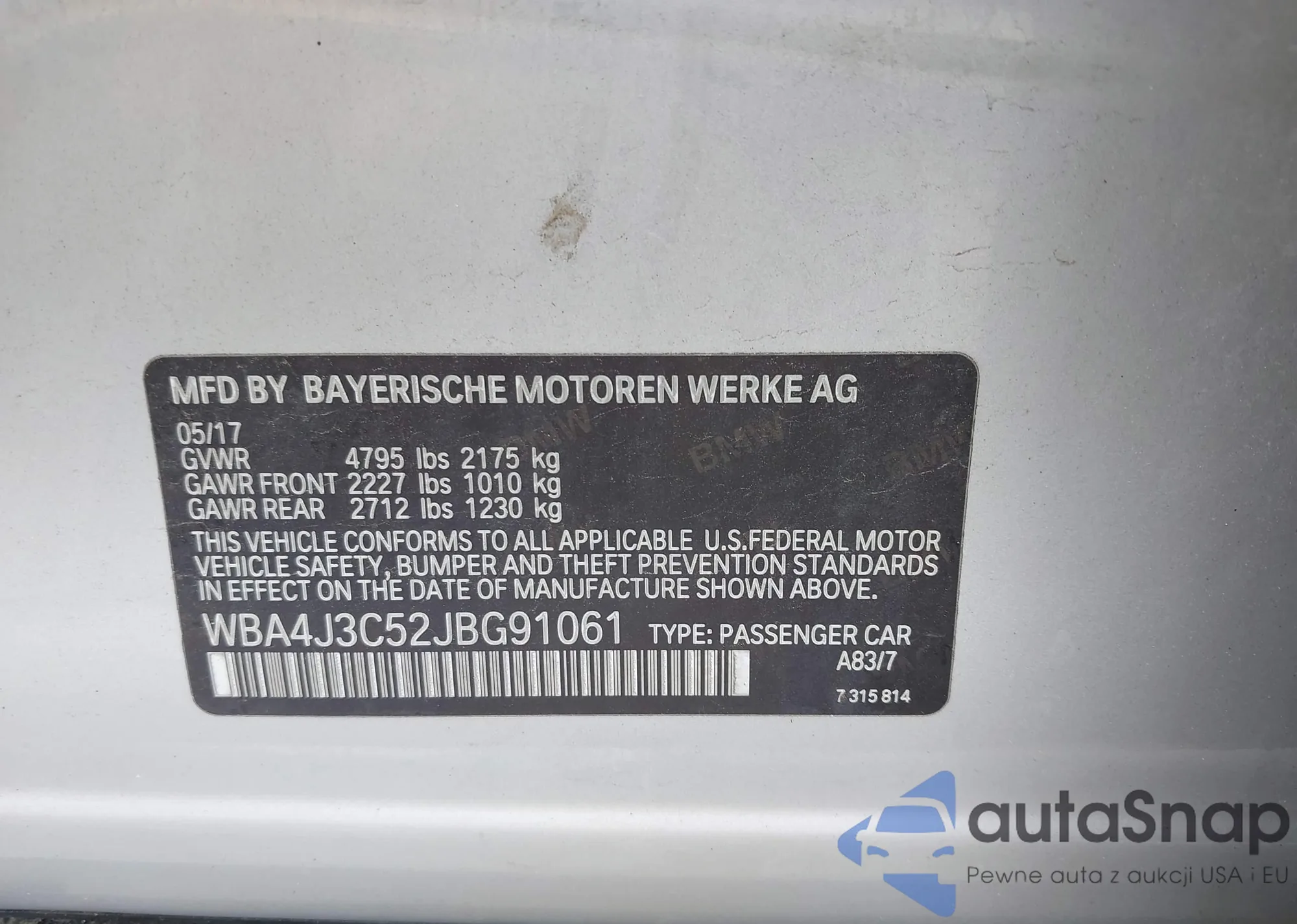 VIN: WBA4J3C52JBG91061