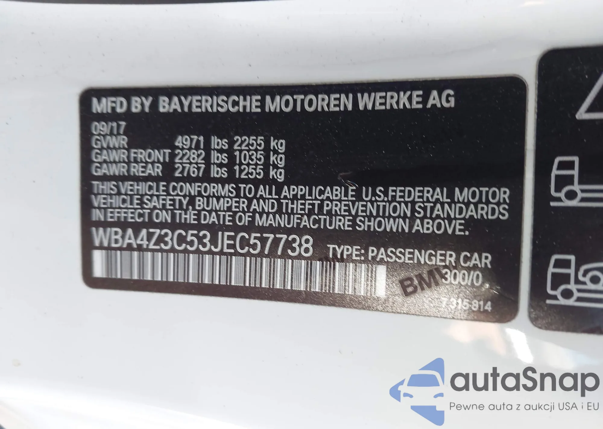 The car BMW 4er 2018 (VIN WBA4Z3C53JEC57738) has not been auctioned before. The documents are clean, and the mileage matches or is below the market average. Sold by an insurance company – we recommend purchase. Delivery to the port will take approx. 6–8 weeks.