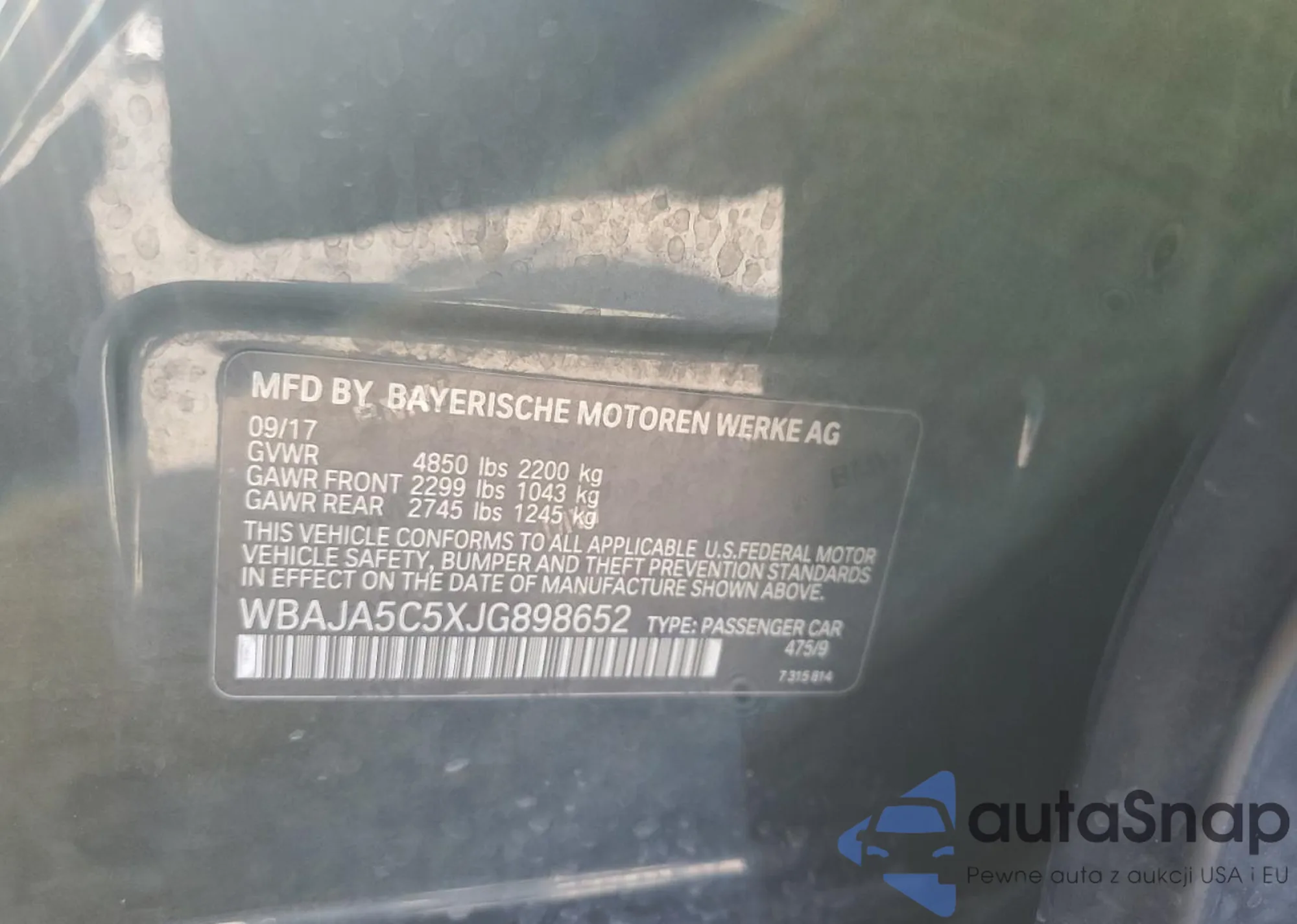 VIN: WBAJA5C5XJG898652