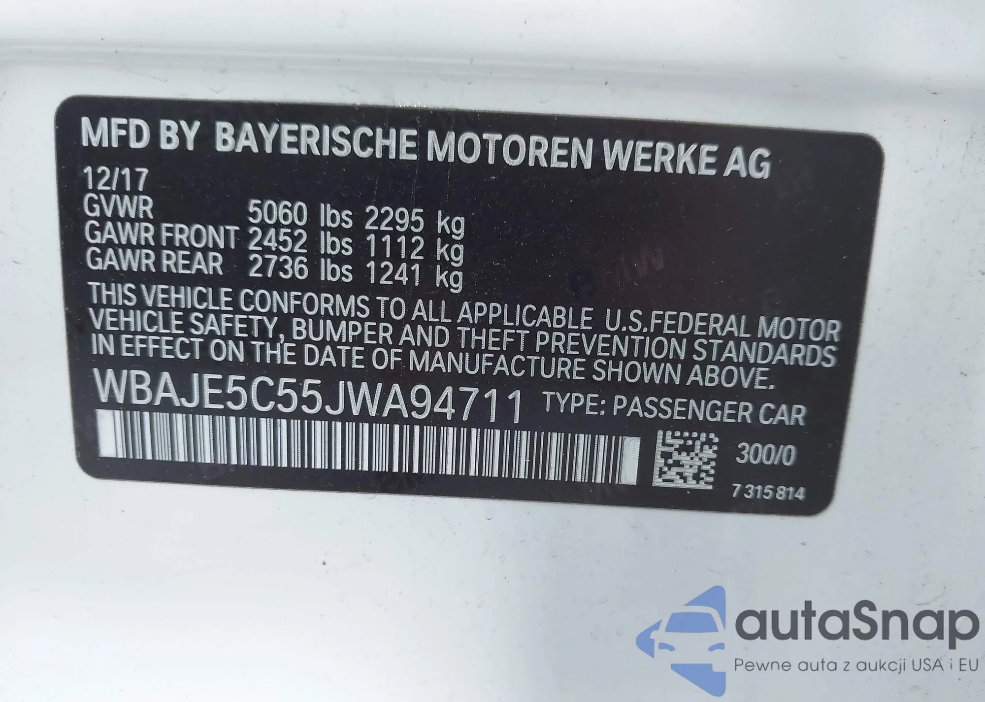 VIN: WBAJE5C55JWA94711