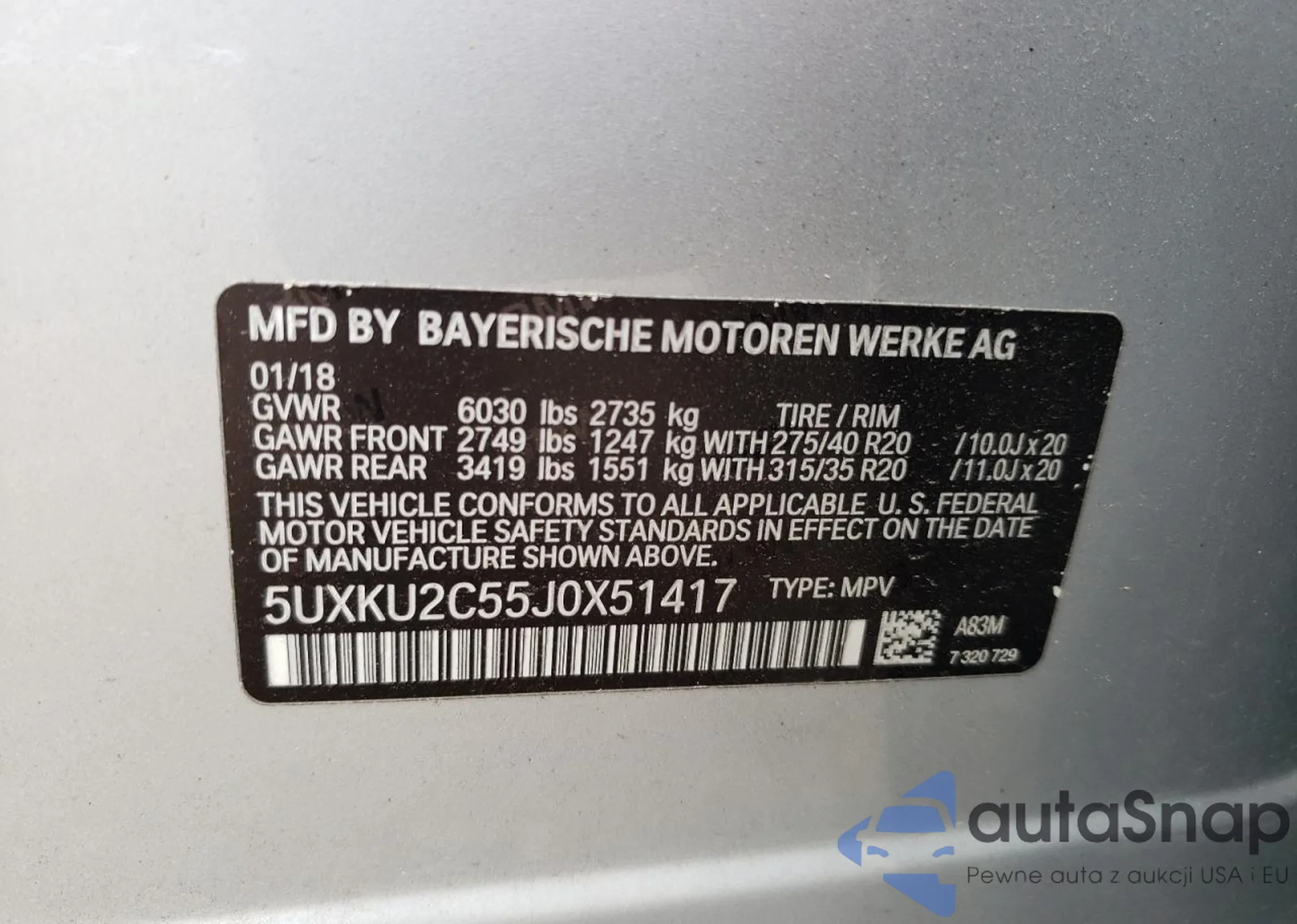The car BMW X6 2018 (VIN 5UXKU2C55J0X51417) has documents that prevent registration. Export and registration may be difficult. Contact AutaSnap experts to find alternatives.
