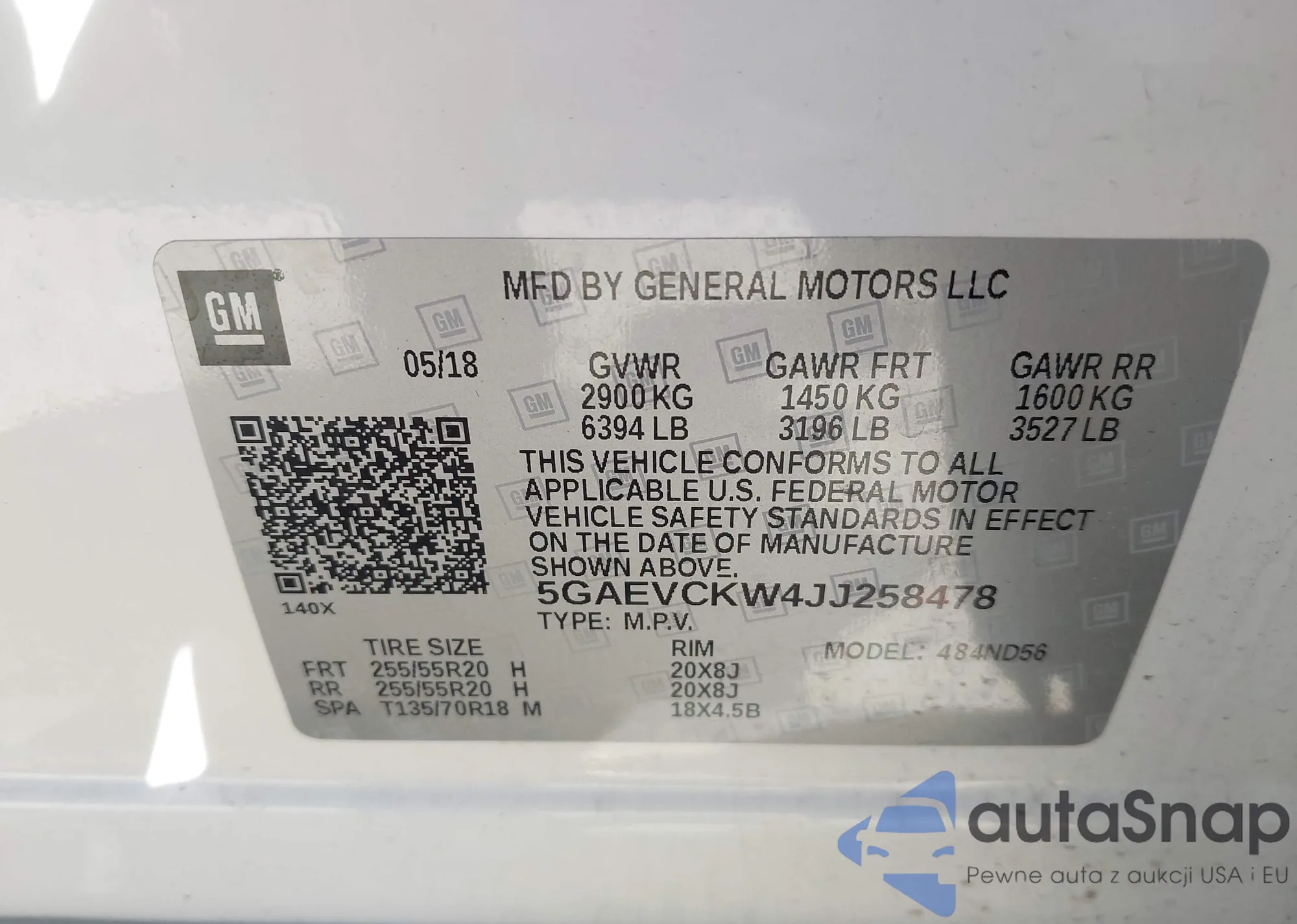 The car Buick Enclave 2018 (VIN 5GAEVCKW4JJ258478) has not been auctioned before. The documents are clean, and the mileage matches or is below the market average. Sold by an insurance company – we recommend purchase. Delivery to the port will take approx. 6–8 weeks.