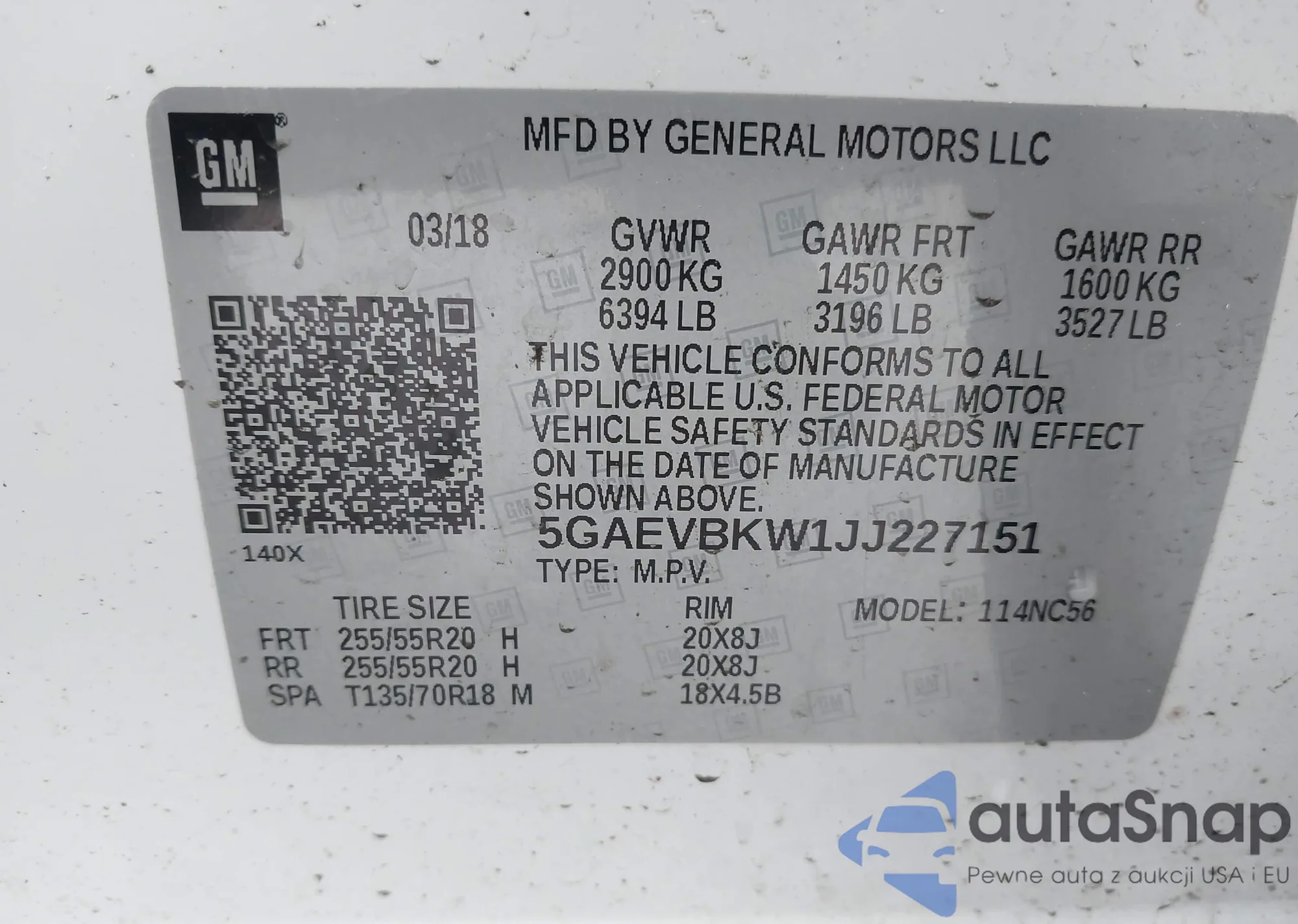 VIN: 5GAEVBKW1JJ227151