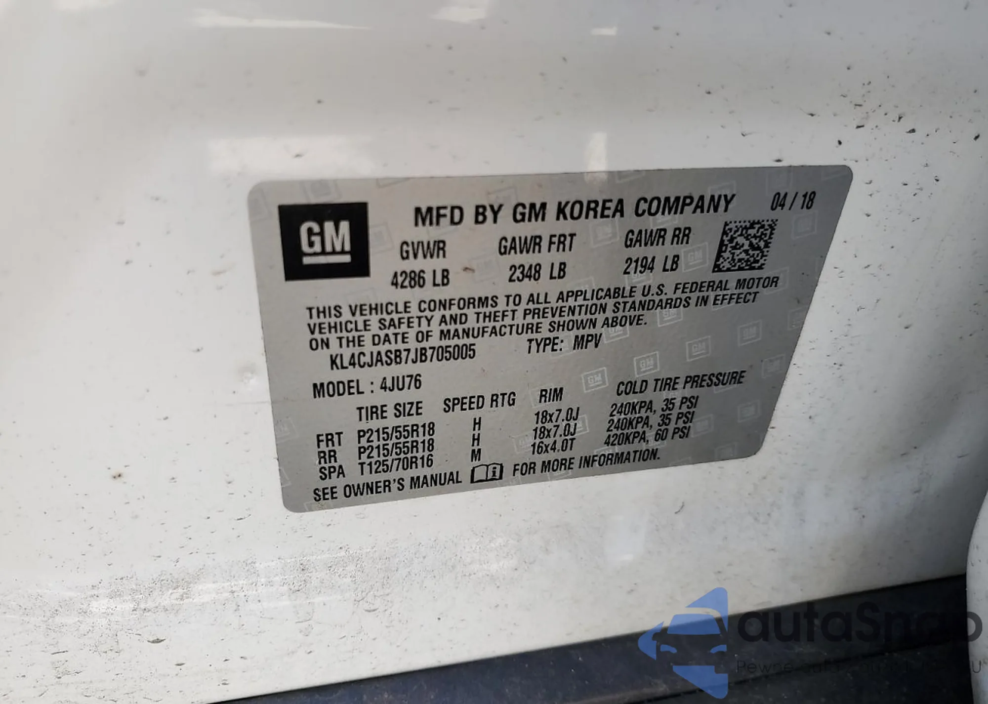 VIN: KL4CJASB7JB705005
