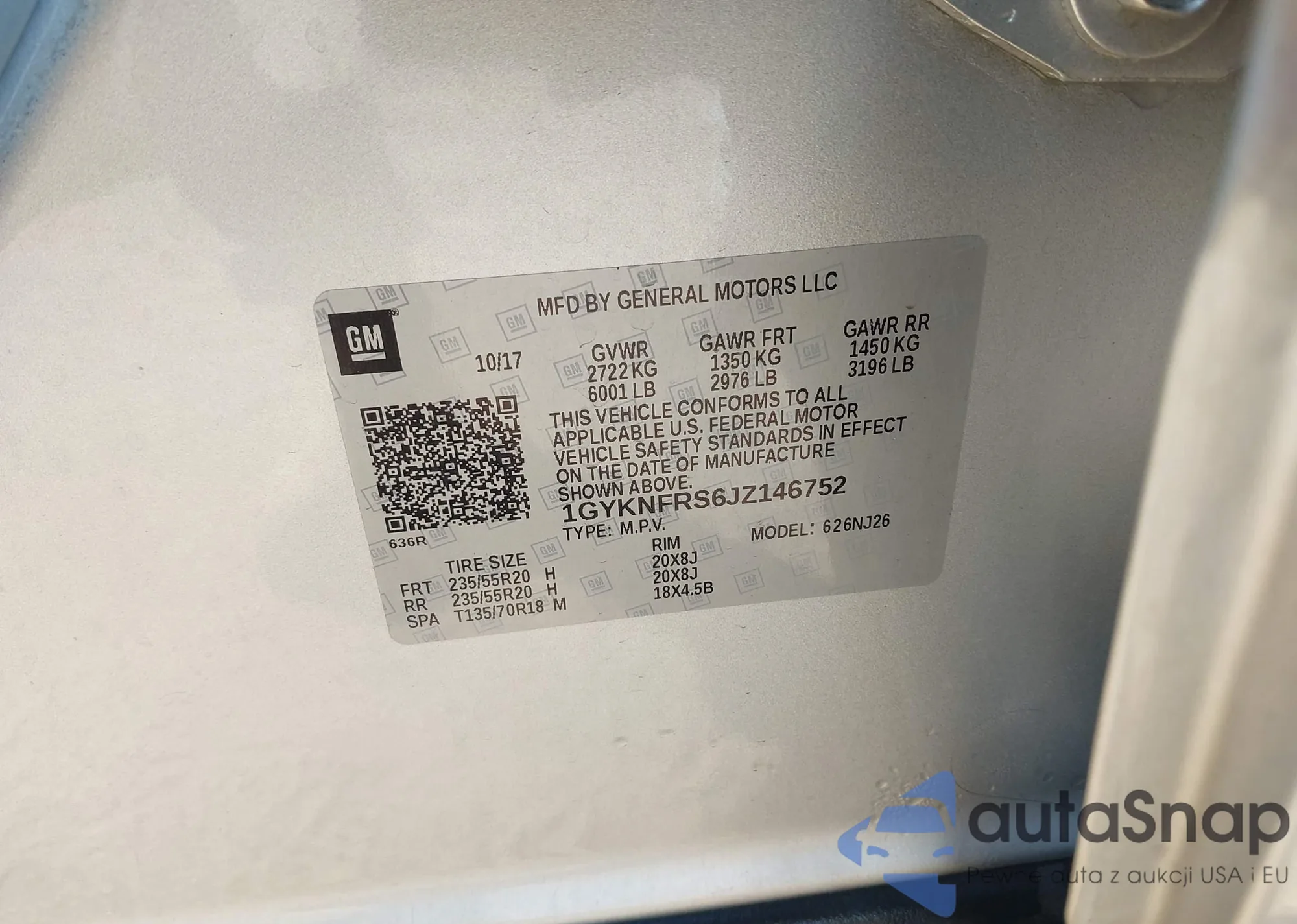 VIN: 1GYKNFRS6JZ146752