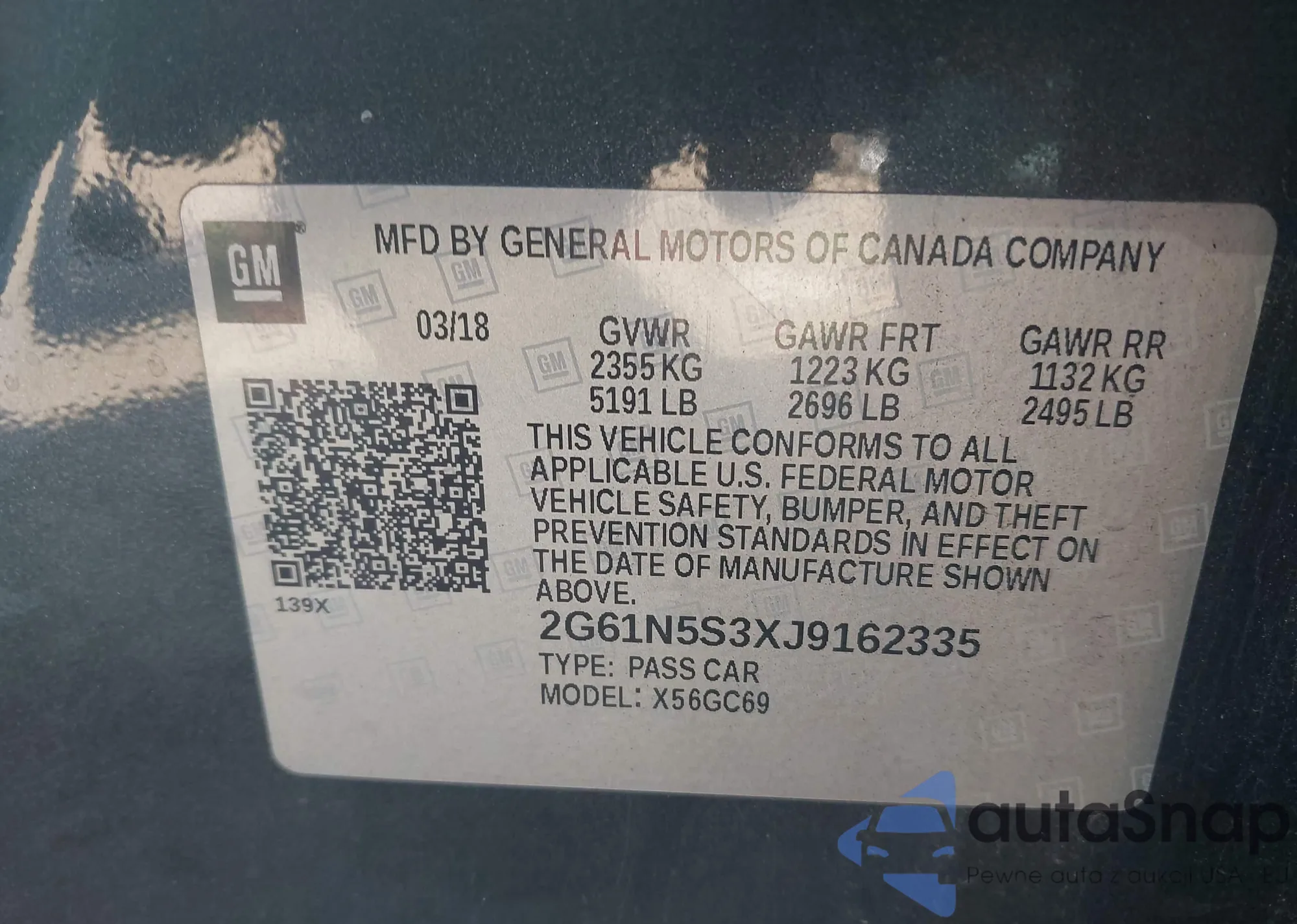 VIN: 2G61N5S3XJ9162335