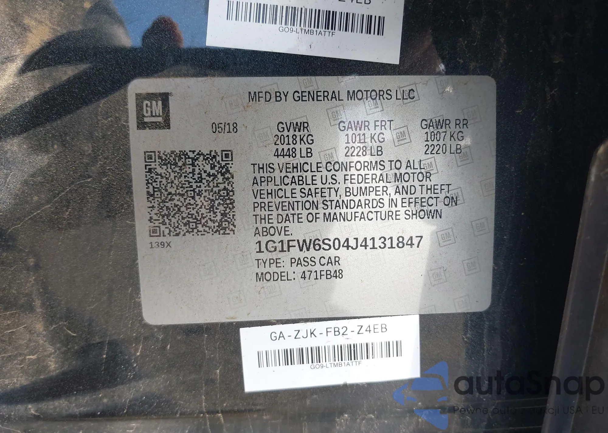 VIN: 1G1FW6S04J4131847