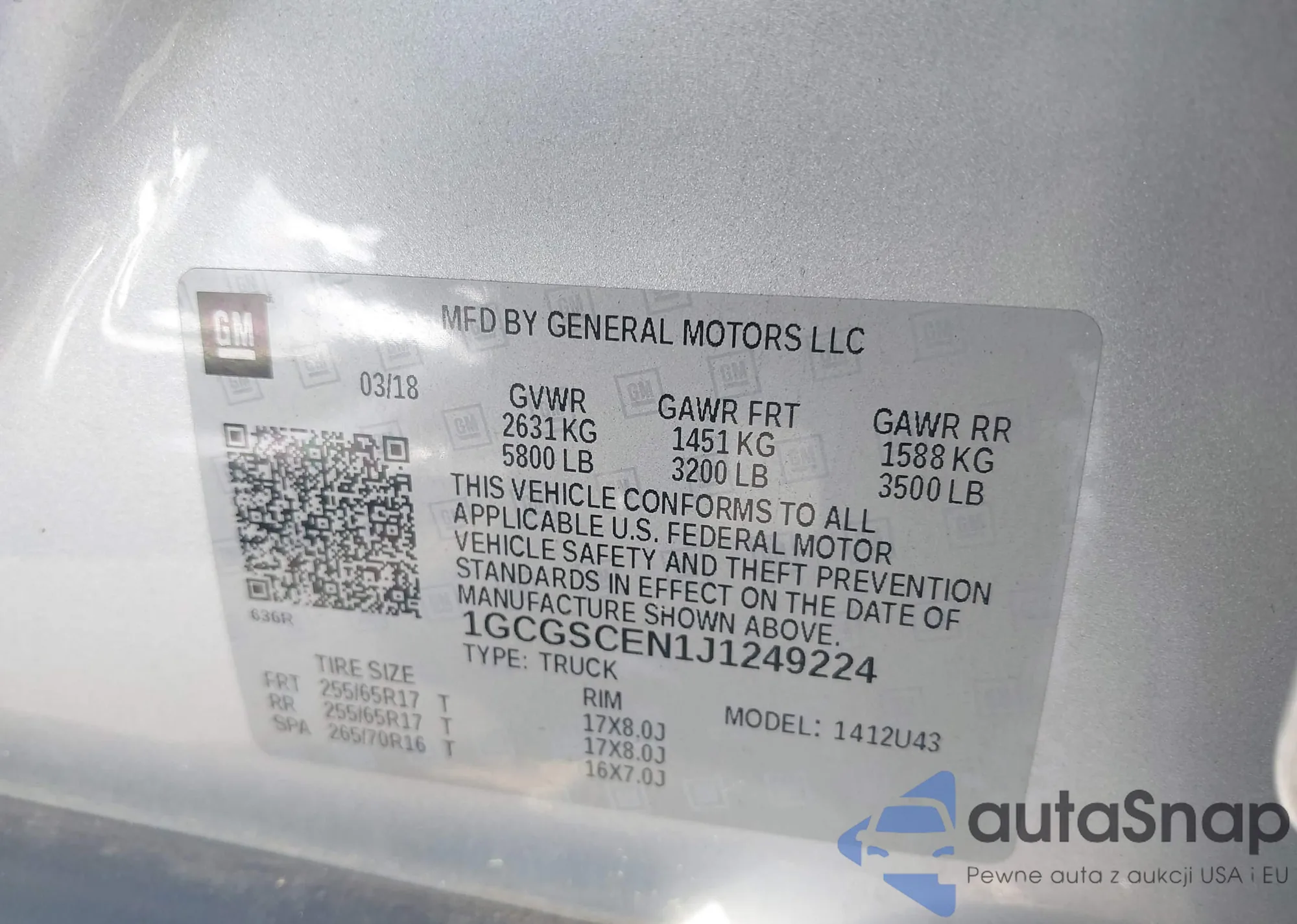 The car Chevrolet Colorado 2018 (VIN 1GCGSCEN1J1249224) has not been auctioned before. The documents are clean, and the mileage matches or is below the market average. Sold by an insurance company – we recommend purchase. Delivery to the port will take approx. 6–8 weeks.