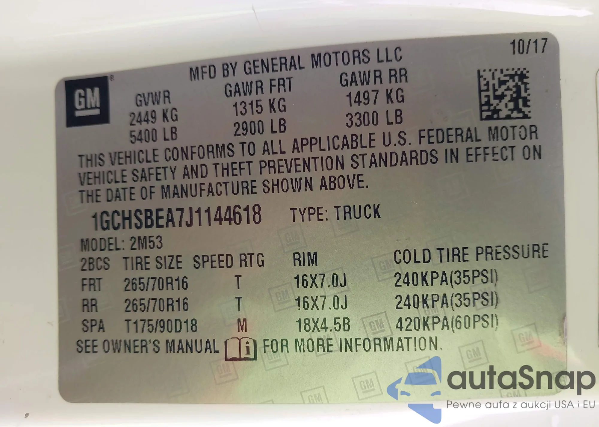 VIN: 1GCHSBEA7J1144618
