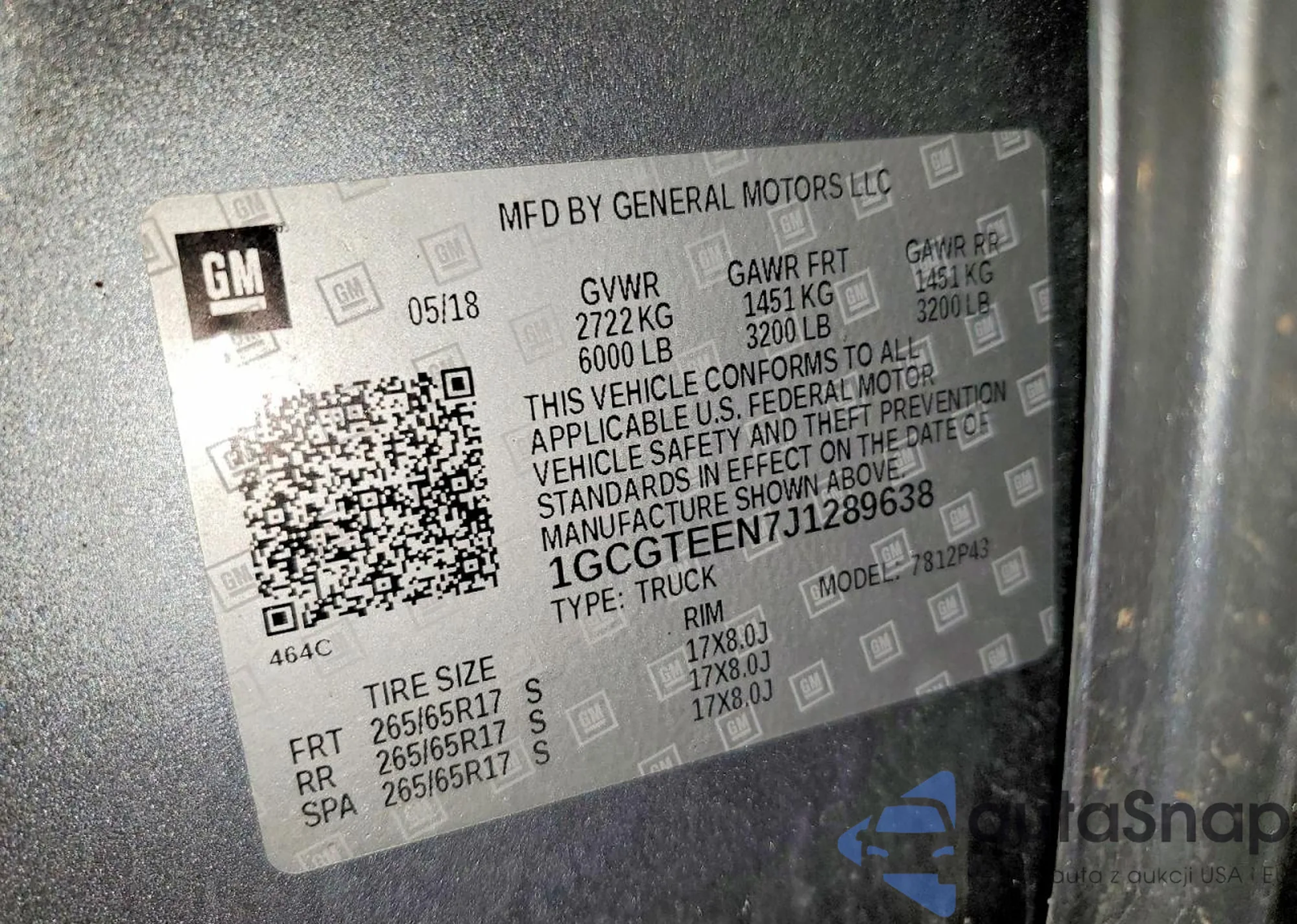 The car Chevrolet Colorado 2018 (VIN 1GCGTEEN7J1289638) has not been auctioned before. The documents are clean, and the mileage matches or is below the market average. Sold by an insurance company – we recommend purchase. Delivery to the port will take approx. 6–8 weeks.