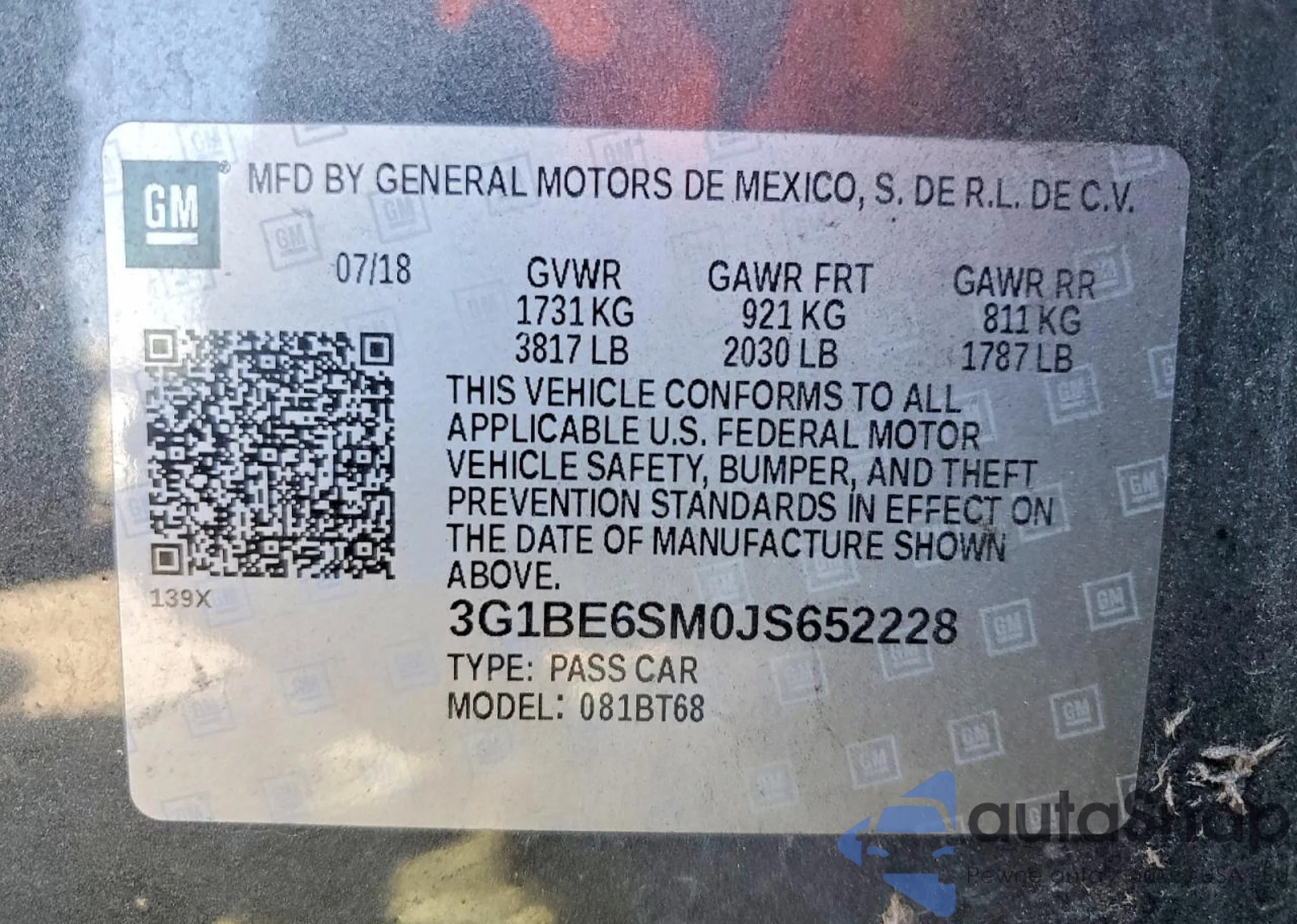 VIN: 3G1BE6SM0JS652228