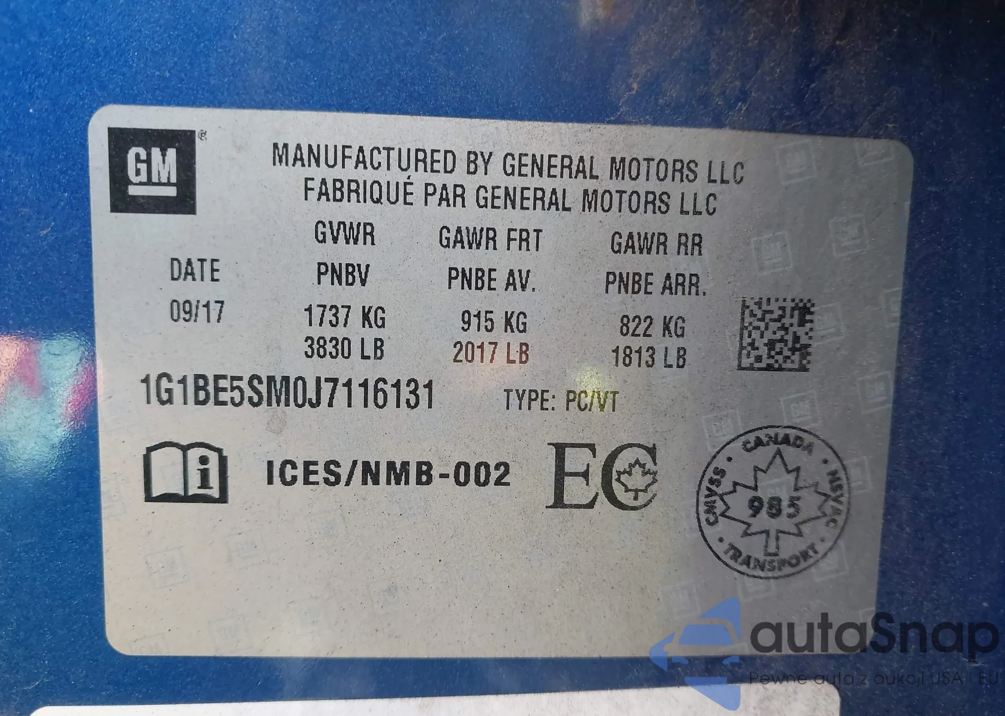VIN: 1G1BE5SM0J7116131