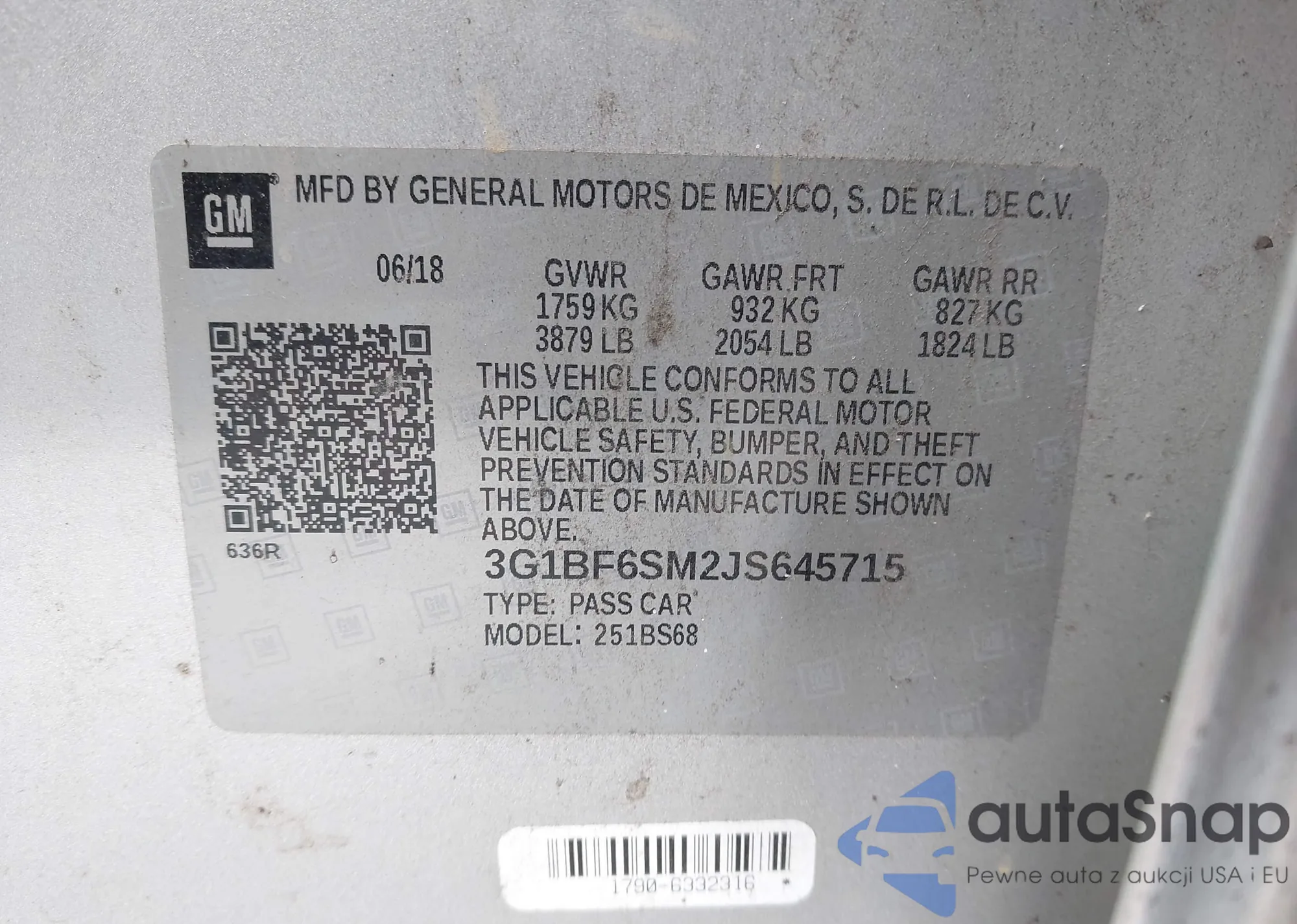 The car Chevrolet Cruze 2018 (VIN 3G1BF6SM2JS645715) is sold by an unverified seller. We recommend checking the Carfax report and confirming registration possibilities before purchase.
