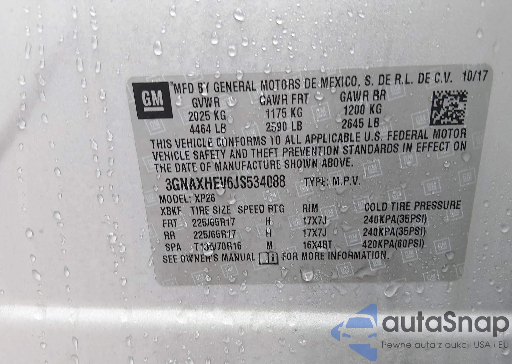 VIN: 3GNAXHEV6JS534088