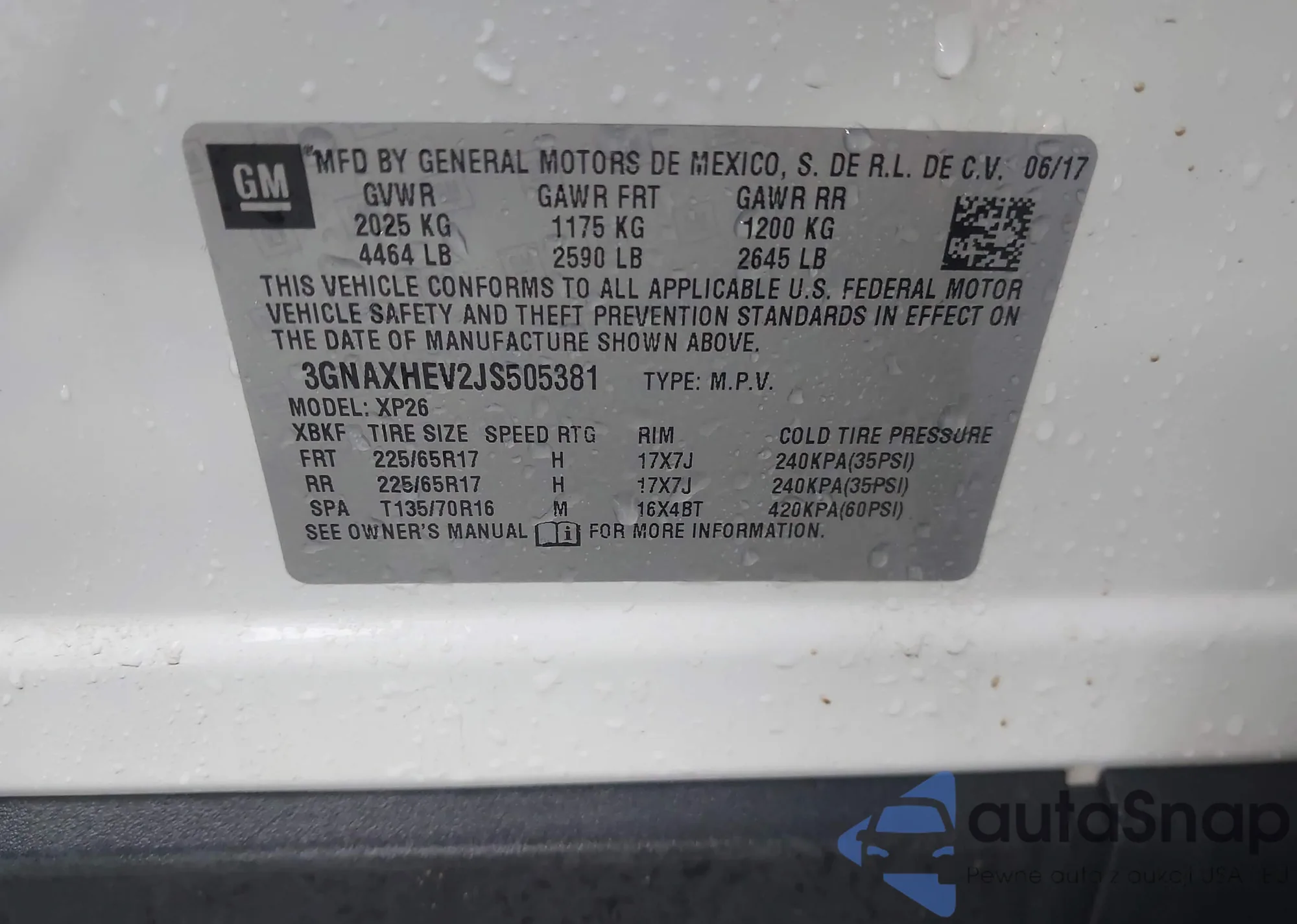 VIN: 3GNAXHEV2JS505381