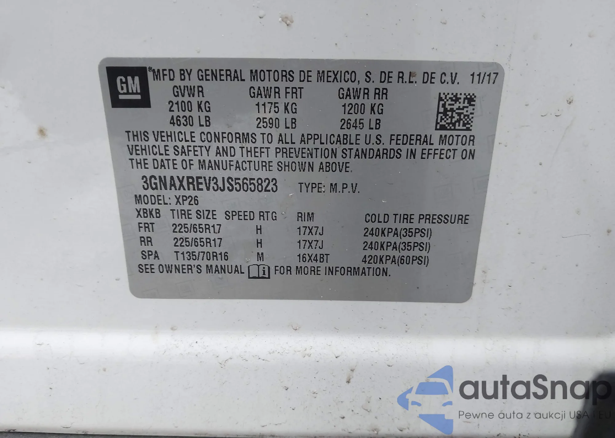 VIN: 3GNAXREV3JS565823