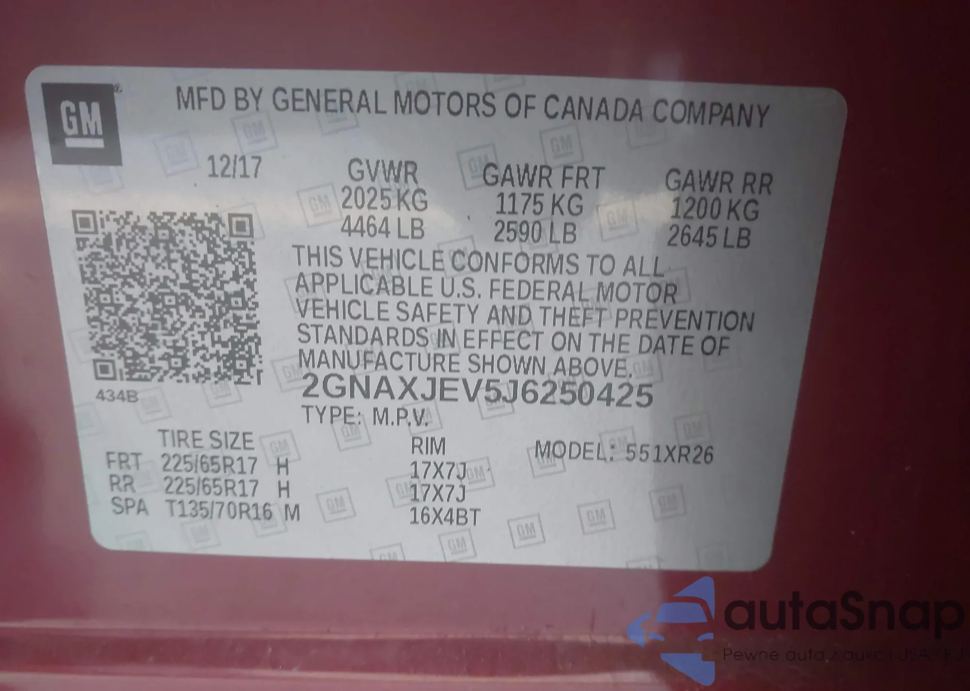 VIN: 2GNAXJEV5J6250425