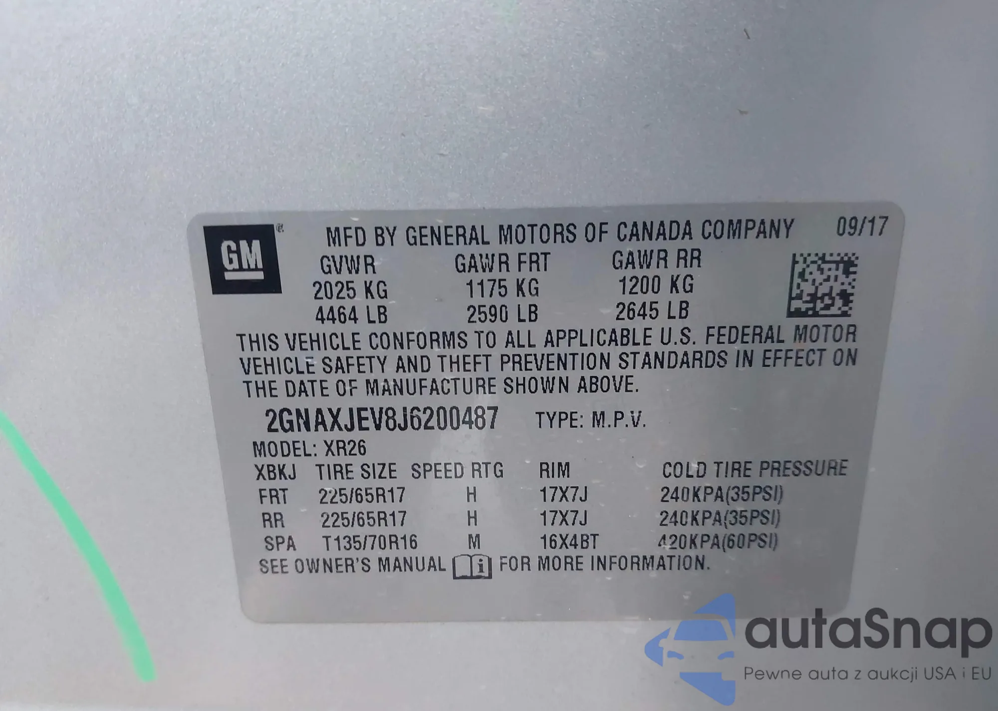 The car Chevrolet Equinox 2018 (VIN 2GNAXJEV8J6200487) has not been auctioned before. The documents are clean, and the mileage matches or is below the market average. Sold by an insurance company – we recommend purchase. Delivery to the port will take approx. 6–8 weeks.